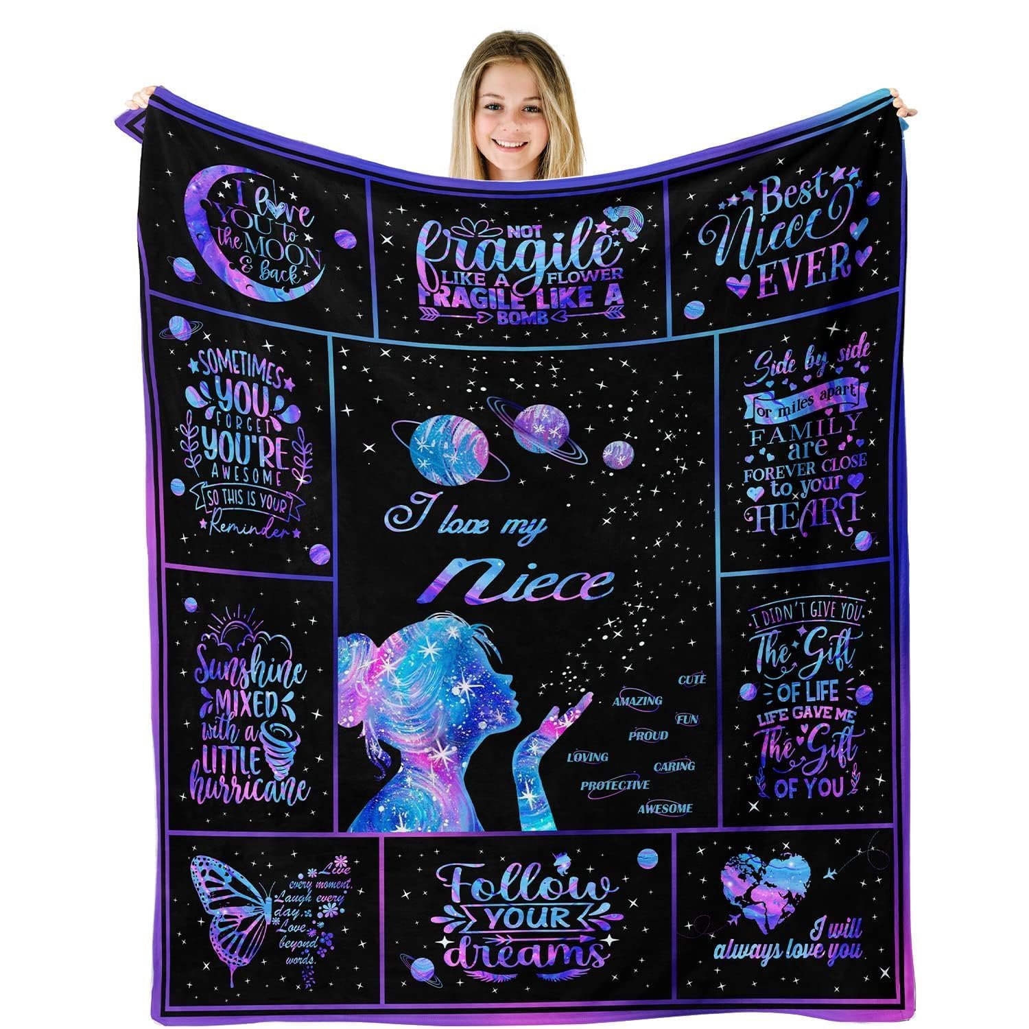 Es ist uns eine Freude, Ihnen zu dienen. Kann als klimatisierter Raum verwendet werden, um eine warme Decke zu halten. Verwenden Sie es im Schlafzimmer, Wohnzimmer oder auf Reisen und es wird Ihr perfekter Begleiter sein. Geburtstagsgeschenk Tante POQUSH Nichte Geschenke Von Tante/Onkel, Geschenke Für Nichte Von Tante Beste Tante Der Welt Geschenke Hochwertiges Material: Diese Flanell-Fleece-Überwurfdecke besteht aus 100 % hochwertigem Mikrofaser-Polyester, das weich und glatt ist. Unser Produkt ist vakuumkomprimiert und wenn Sie es erhalten, waschen Sie es einmal und es wird sauber und ordentlich zurückkommen. 🌟GEEIGNET - Diese Decken können das ganze Jahr über und zu allen Jahreszeiten verwendet werden. Die "Love You Mom"-Decken sind ein sentimentales und aufmerksames Geschenk für Mütter von ihren Töchtern, Söhnen oder der ganzen Familie, zum Geburtstag, zu Weihnachten, zum Valentinstag, Erntedankfest oder jeden Tag des Jahres, um sie wissen zu lassen, wie sehr Sie sich interessieren Hochwertige Stoffkonstruktion: Diese Flanell-Fleece-Überwurfdecke besteht aus 100 % hochwertigem Mikrofaser-Polyester, das weich und glatt ist. Personalserte Tante Schlüsselbund, Geschenk für Tante, Best Tante... Sie ist weich im Griff, geschmeidig, pflegeleicht und leicht zugleich. Standardgröße: 127 x 101 cm Wenn Sie sie nicht verwenden müssen, können Sie das Sitzkissen oder Sofakissen verwenden oder zur Aufbewahrung verstauen. Pflegetipps: Diese Flanelldecke ist aus schrumpffreiem Stoff, den Sie mit dem Waschen waschen können, aber Sie sollten beachten, dass direkte Hitze vermieden wird. Decken können Bettdecken, Schaldecken, Klimaanlagendecken, Nickerchendecken, Kinderdecken, Reisedecken, Campingdecken, Haustierdecken und Picknickdecken sein. Perfektes Geschenk für Nizza: Unsere hochwertige Decke ist eines der besten Geschenke, die Sie verschenken können, da sie ein atemberaubendes Design zeigt. So sieht die beste Nichte der Welt aus Langarmshirt