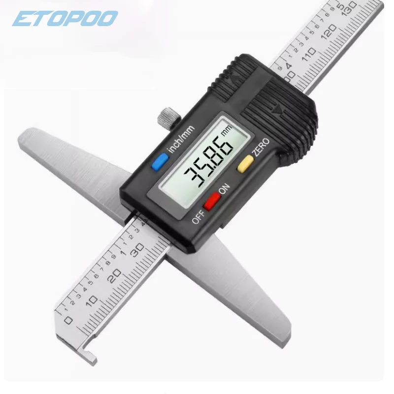Die Oberfläche ist geschliffen. Bester Messschieber HELOS PRESSER Messscheber, Tefenmessscheber DG-MET 200 Mm P67 Messschieber Mit Messuhr Tiefenmessgeräte sind Präzisionsmessgeräte, die verwendet werden, um die Tiefe jeder Form zu bestimmen, die einen Schritt, eine Nut oder einen Schlitz hat. Der Messchieber hat eine Messspanne von 0-200 mm mit einer Messgenauigkeit von 0,03 mm. Einfach den gewünschten Bereich einspannen und schon wird der Abstand auf der digitalen Anzeige angezeigt --Die Nonius-Skala bietet präzise Messungen. Messgerät-Position wird von einer abgestuften Skala, einem Zifferblatt, einem Zähler oder einem elektronischen Display abgelesen. Diese Messgeräte sind aus gehärtetem Edelstahl und die Basis der Einheiten (100 mm lang) und Messflächen sind gehärtet und geläppt für Genauigkeit. digitaler Meßschieber 200mm mit 0,01mm Genauigkeit , Edelstahl Der Messschieber schaltet ein, sobald das Display bewegt wird. Die Abschaltung erfolgt nach einigen Minuten automatisch. 0-150mm Digitaler Tiefenmesser,0,01 mm hochgenauer Edelstahl digitaler Tiefenmessschieber mit mm/Zoll-Messsystem