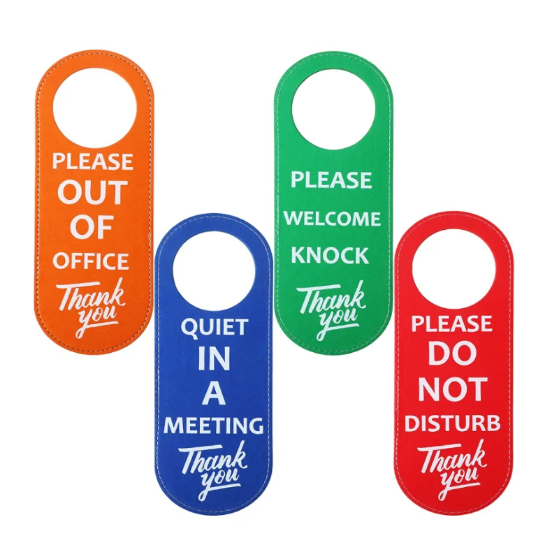 4 Pack PU Leather Do Not Disturb Door Sign 22.5 X 8.5 Cm, Double