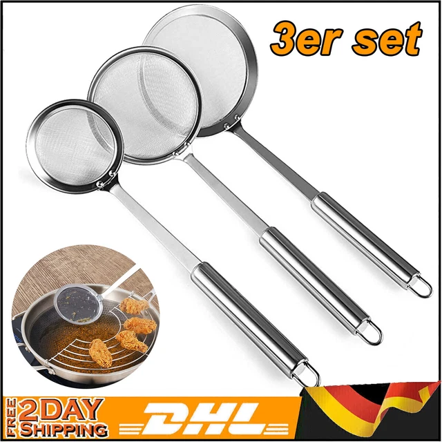 de Buyer - Edelstahlsieb mit 4 auswechselbaren Siebeinsätzen (3mm/ 2mm/ 1mm/ 0,5mm Durchmesser) - 4605.21, Silber Die Siebe sind aus 18/8 Edelstahl gefertigt und verfügen über Mikroperforationen, die ideal für kleine Körner oder Nudeln sind – wodurch sie vielseitiger sind als herkömmliche Siebe. Tramontane Gourmet-Siebe sind elegante und langlebige Küchenzubehör, die entwickelt wurden, um die Zubereitung von Speisen zu erleichtern. Set beinhaltet: 1,25 Qt, 2,5 Qt & 4,5 Qt Sieb;UPC-016017135550 Nolte moderne L-Küche mit Kücheninsel weiß - Küchen Petsch Schüssel Mit Tramontina 3er-Pack Edelstahl-Sieb-Set Für Küche, 1,25 L, 2,5 L Edelstahl Nudelsieb