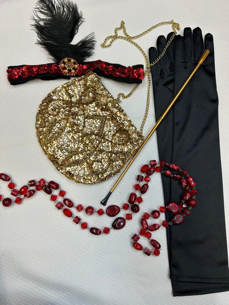 Spar-Pack | Schwarze 20er Jahre Handschuhe Und Perlenkette