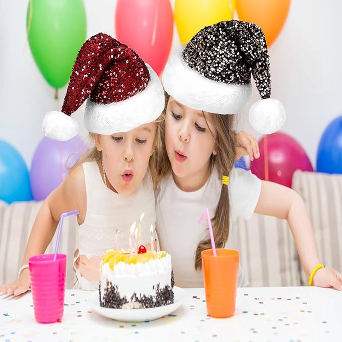 PUZAUKAL Weihnachtsmütze Pailletten Nikolausmütze Elf Erwachsene