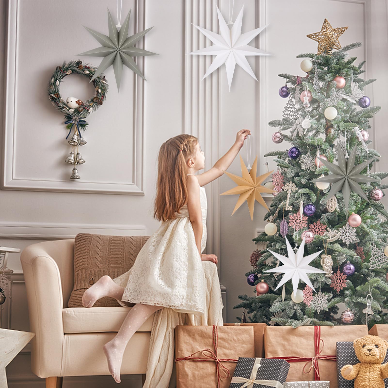6 Stück Papiersterne Für Weihnachts Deko,Thinbal