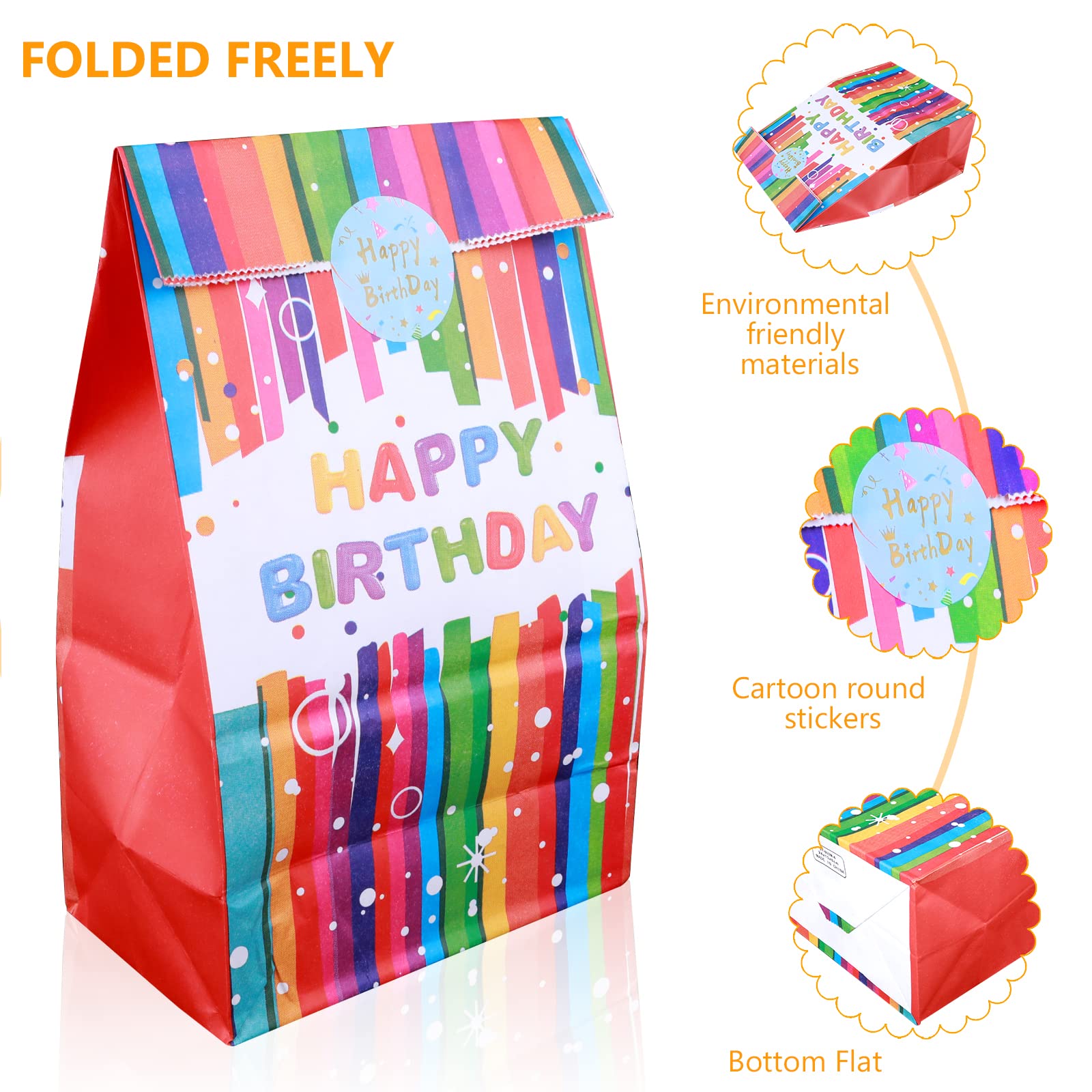 Grevosea 15 Stück Happy Birthday Tüte,24x13cm Geschenktüten Geburtstag,Tasche Bunte Papiertüte Für Kinder Geburtstage Für Party Mitgebsel Tüten Papier Mit 24 Aufkleber Zum Verpacken Geschenken,Party