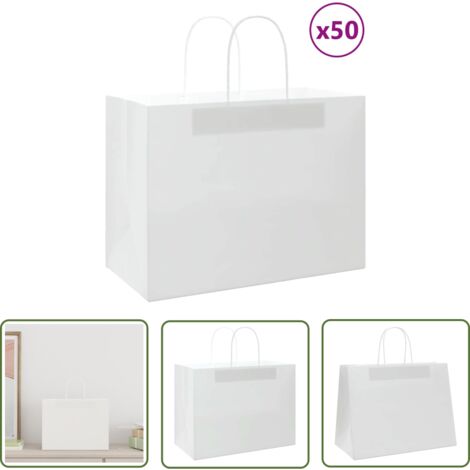 Papier Sack 50 X Papiertragetaschen Weiss 45+17x47 Cm | Stabile Papiertüten |Beutel Geschenktüten Klein Mit Henkel