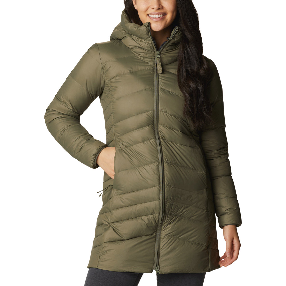 Eingrifftaschen mit Reißverschluss;Einfassung an den Ärmelabschlüssen;Kapuze und Kragen mit Plüsch-Fleece gefüttert. Sehen Sie gut aus und fühlen Sie sich bei jedem Wetter gut mit unserer neuesten Kleidung und Ausrüstung, die Sie während der gesamten Saison bequem und geschützt hält., Omni-Heat Thermoreflektierend, RDS-zertifizierte Daunen Damen Wintermantel Columbia Autumn Park Down Hooded Jacket Women Ab 103,90 Daunenjacke Damen Autumn Park Down Mid Jacket női utcai kabát - zöld