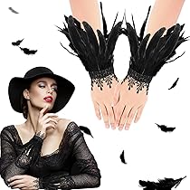 Vintage Federmanschetten Gothic Party Accessoire 1 Paar Vintage Feder- Manschetten - Gothic Style - Mit Verstellbaren Bändern - Für Halloween Und Parties Party Manschetten Mit Federn