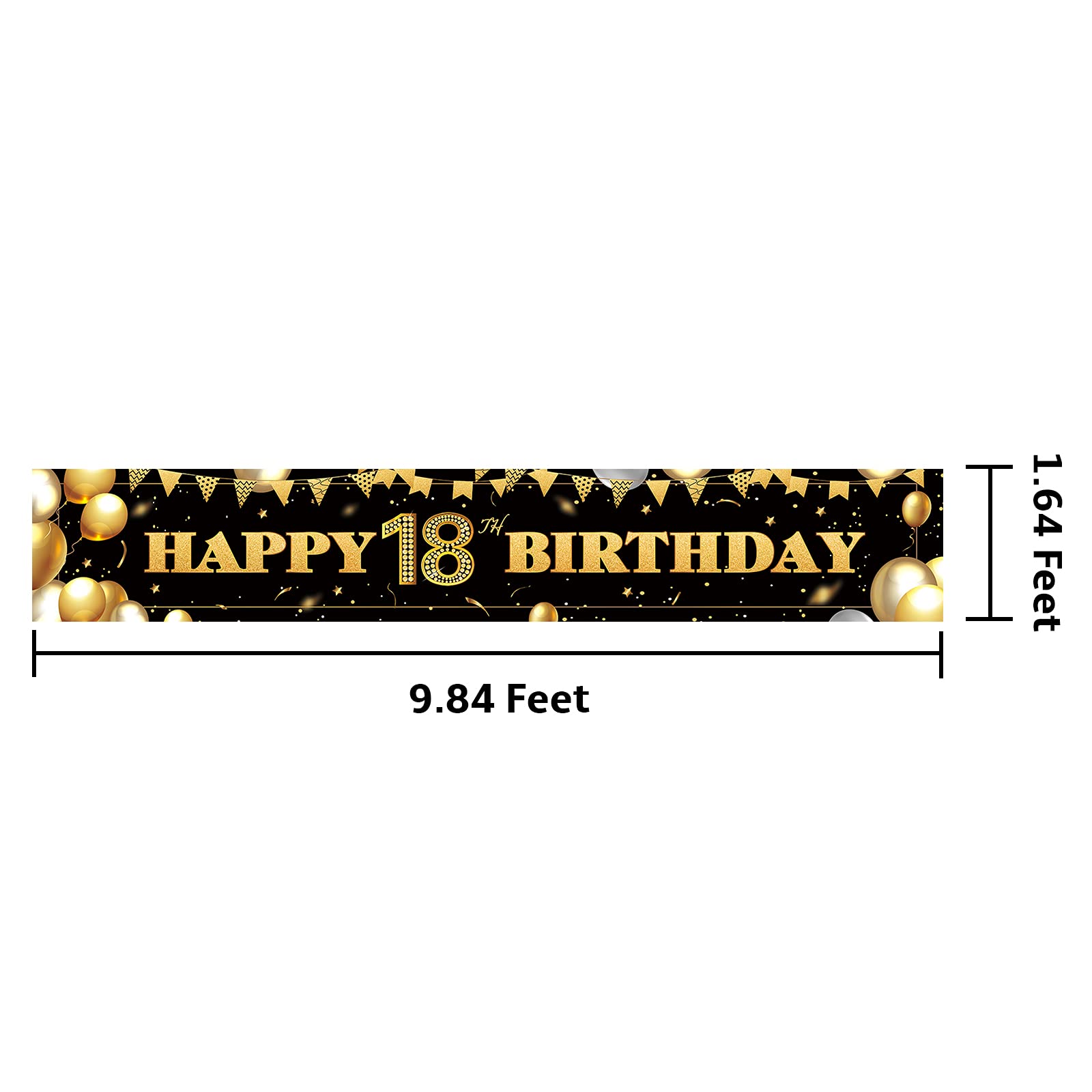 18 Geburtstag Decoration Black Gold, 18 Geburtstag Banner, 18 Geburtstag Party Decor Für Frau Mann, 18 Years Hintergrund Banner, Extra Große Stoff Schild Poster Zum 18, Geburtstag Party Deko