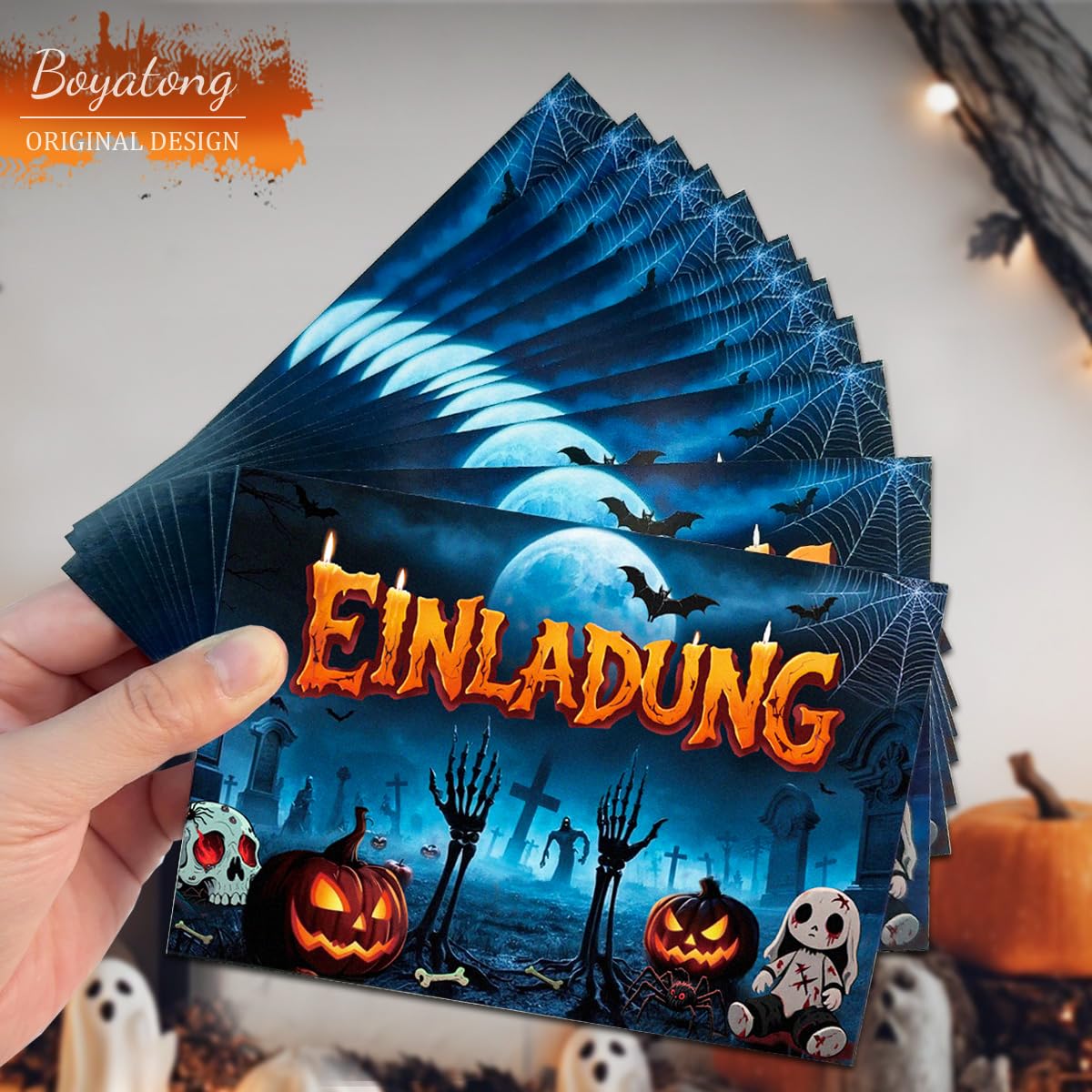 12 X Halloween Einladungskarten Kinder, Schaurig Halloween Party Einladung Friedhof Des Grauens Kürbis, Gruselparty Einladungskarte Zum Halloweenparty Geburtstag Einladungen Erwachsene Teenager