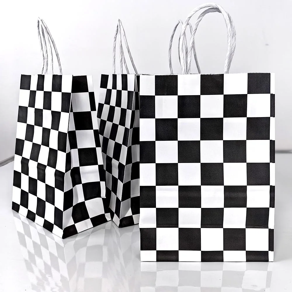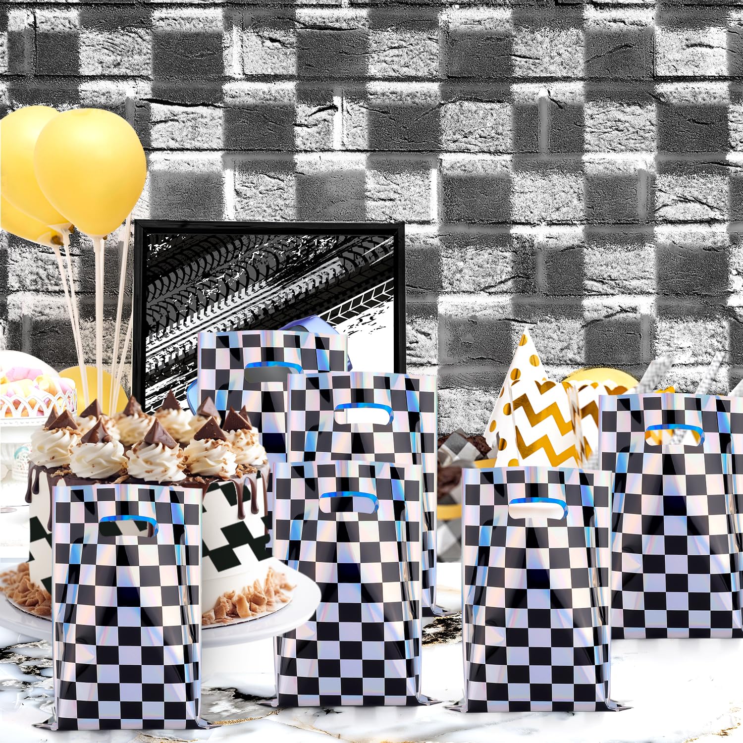 24 Stück Rennwagen-Party-Geschenktüten, Schwarz-weiß Karierte