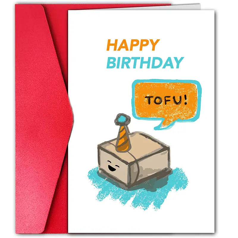 Happy Birthday Tofu Card – Cute Tofu Character With Party Hat – Blank Inside For Personal Messages – Perfect For Vegans, Food Lovers, And Friends Celebrating Birthdays