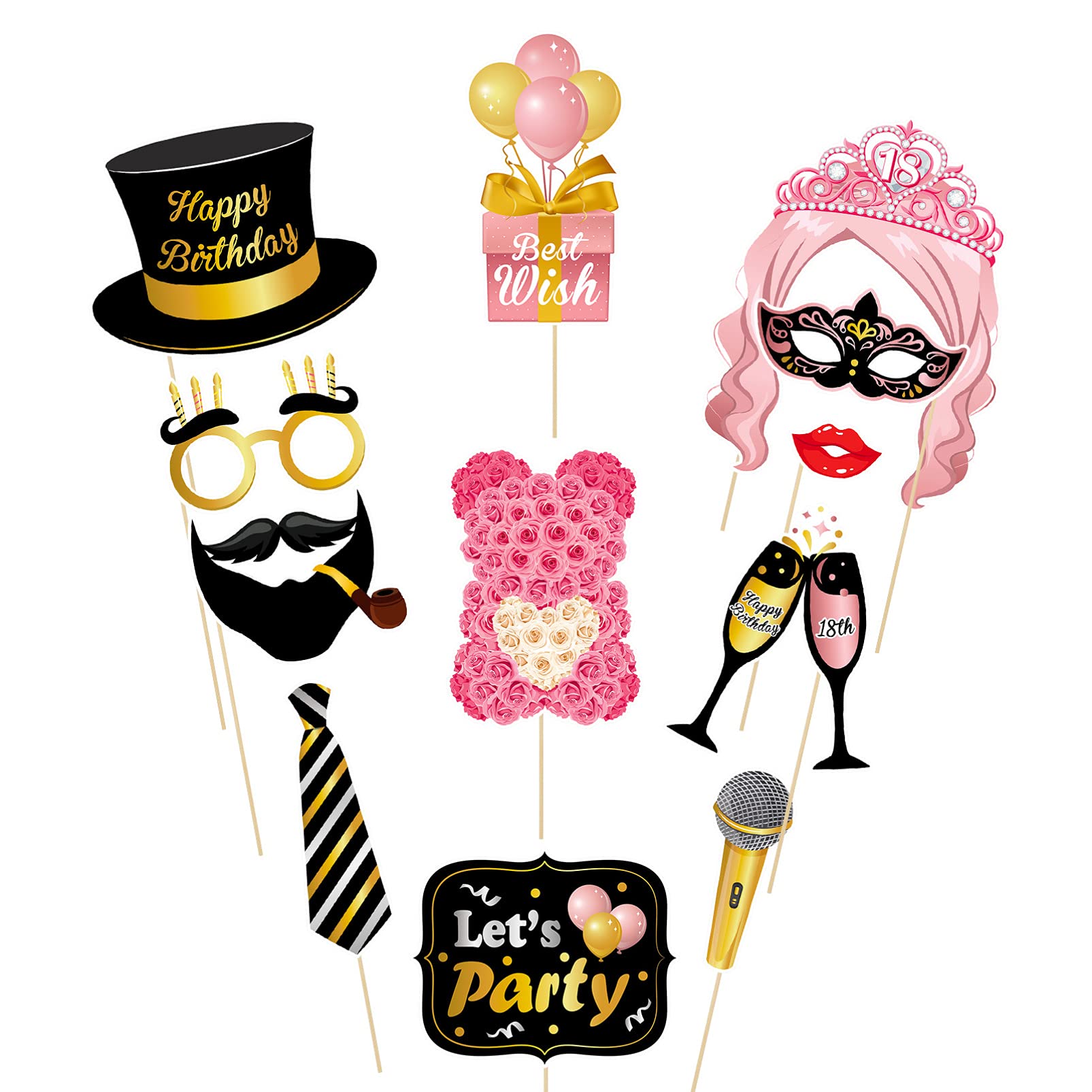 Amosfun 18Th Geburtstag Party Photo Booth Requisiten 24Pcs 18Th Geburtstag Partei Liefert Bereits Montiert Mit Holz Stick Und Streik EIN Pose Zeichen Selfie Requisiten Für Geburtstag