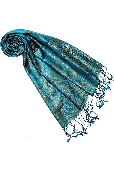Lorenzo Cana Pashmina Damen - Schal Schaltuch Jacquard Gewebt 100% Seide Paisley Muster Seidenschal Seidentuch Grün Ton In Ton 78611