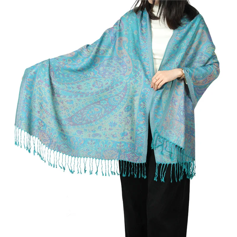 LissKiss Large Roses On Powder Blue Pashmina Feel With Tassels - Blau Scarf, Schal, Einheitsgroesse - 70cm X 180cm