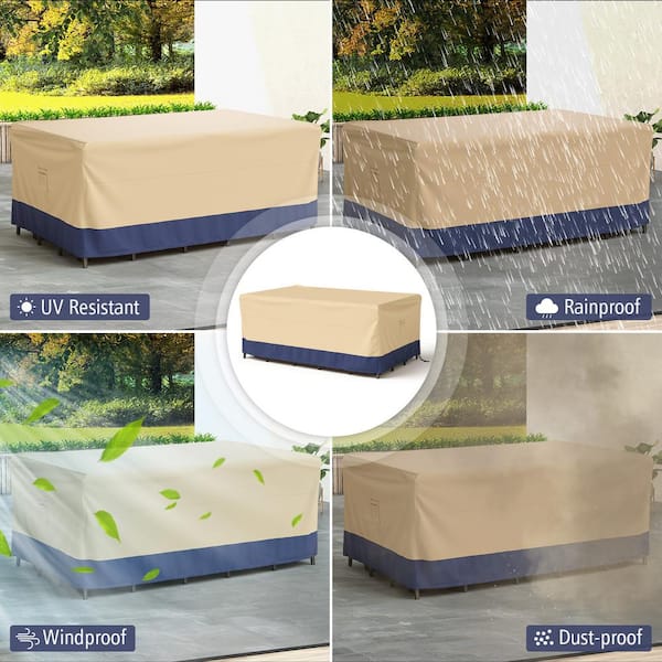 Wasserdicht und starker Wind verhindert , Mit Lüftungsschlitzen HAMLER Rechteckige Terrassentischabdeckung, Außentisch und Stuhlbezüge, Outdoor Essgruppe, Abdeckung für Terrassenmöbel, wasserdicht, strapazierfähig, braun, langlebige Terrassenabdeckungen., PVC mit Oxford-Tuch Gut funktionsfähig unter Sonne, Regen, Schnee und Staub Waterproof Outdoor Table Covers Leader Accessories Rectangular/Oval Patio Table Cover 600D Heavy Du Rectangular Patio Table Coverings