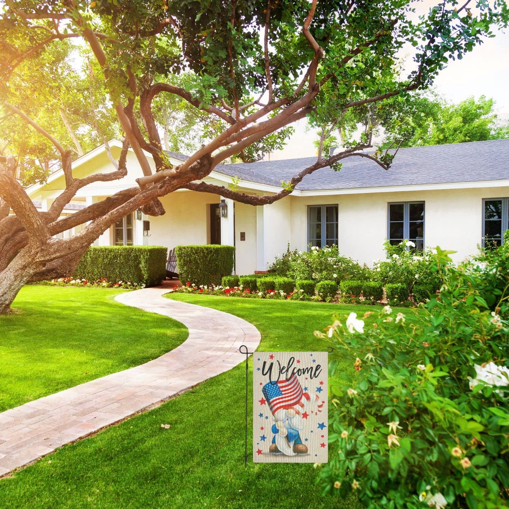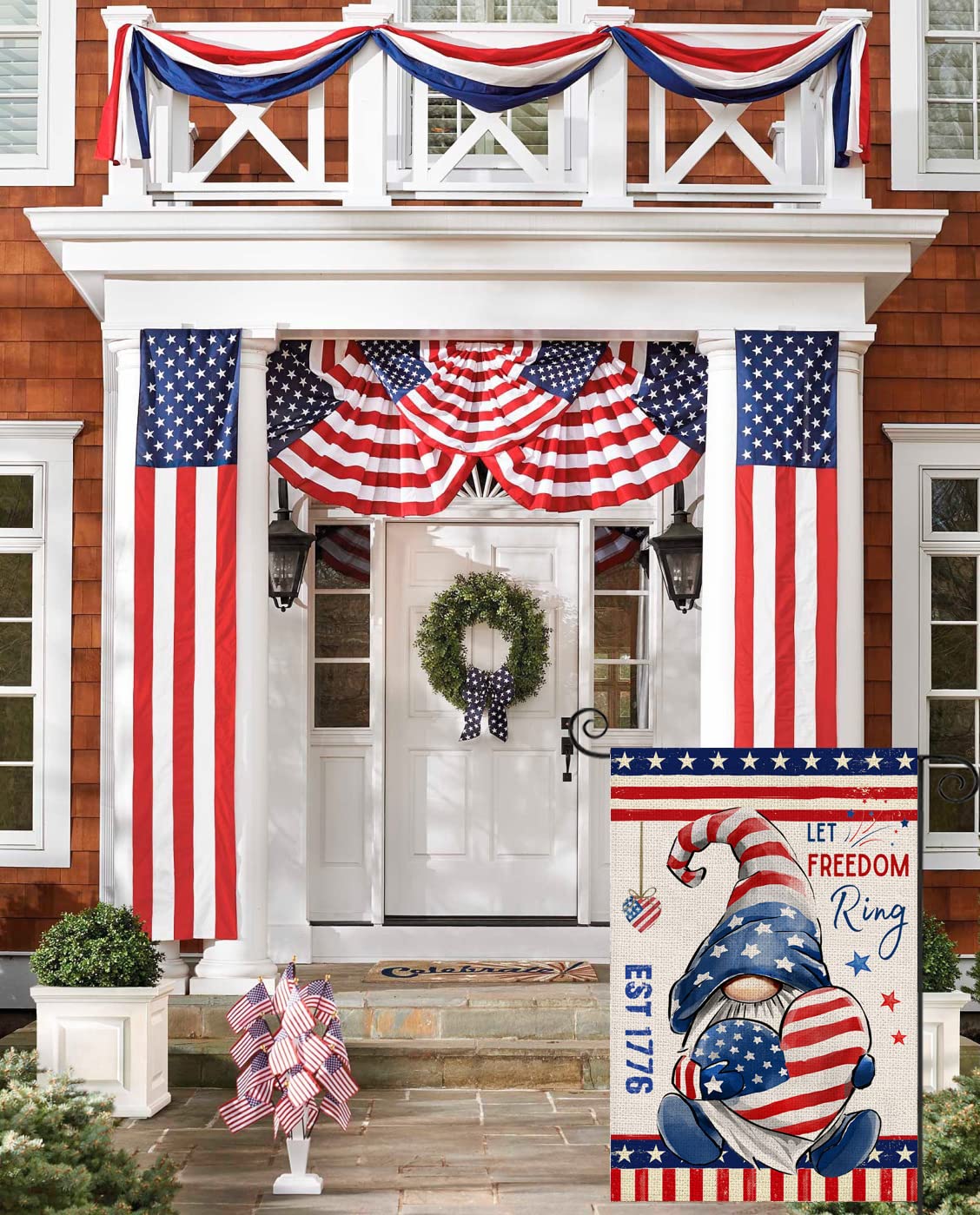 4. Juli Gartenflagge, Patriotische Gartenflaggen, 30.5x45.7 Cm, Doppelseitig, 4. Juli Zwerge, Jute, Hoflagge, Gedenktag, Kleine Vertikale Rasenschilder, Banner Für Zuhause Und Außenbereich (Zwerge-1