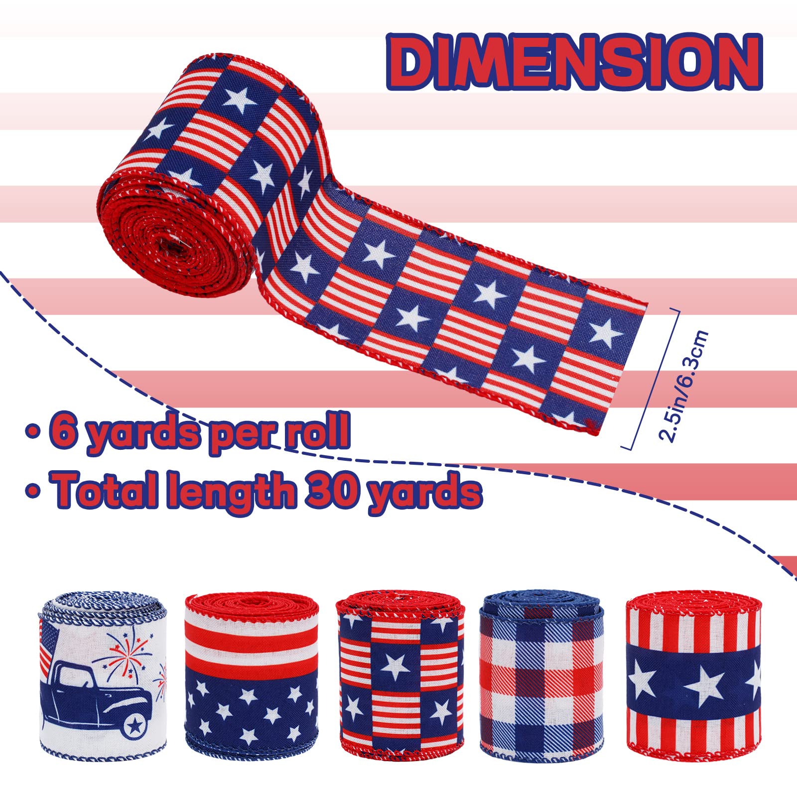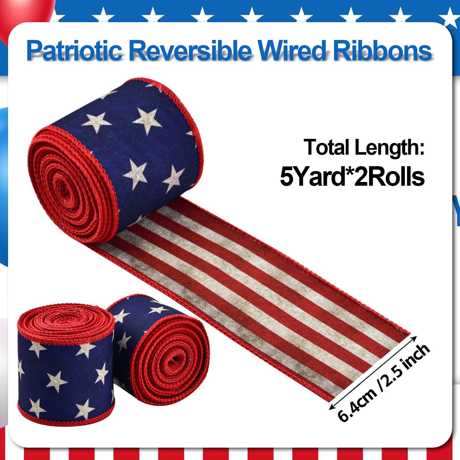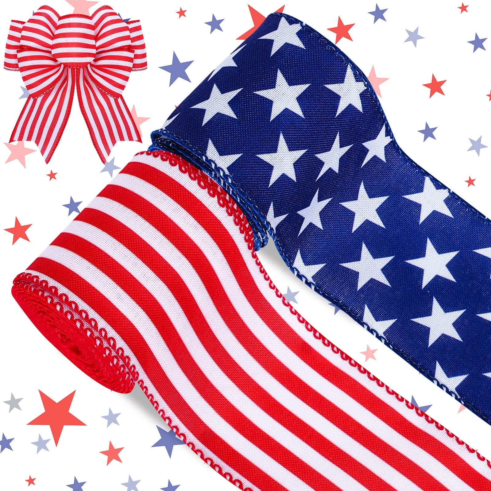 2 Rollen Patriotisches Drahtkantenband Sterne Und Streifen