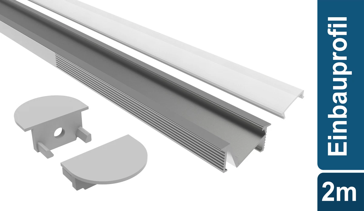LED-Aluminium Profil P2W-2, weiß, 2 m lang - Asmetec Led Profil Paulmann 78403 LumiTiles LED Strip Einbauprofil Top Mit Diffusor 2m Alu Eloxiert Satin Spritzwasserschutz Aluminium Badbeleuchtung Paulmann Led Schiene Abschnittsgröße [LxH]: 22x6mm - Innenbreite 11,2mm Inklusive 4 Kappen (2 mit Loch für Elektrokabel und zwei ohne Loch) und 4 Befestigungsclips Verstärkter Versand mit Holzstreifen, um Transportbrüche zu vermeiden