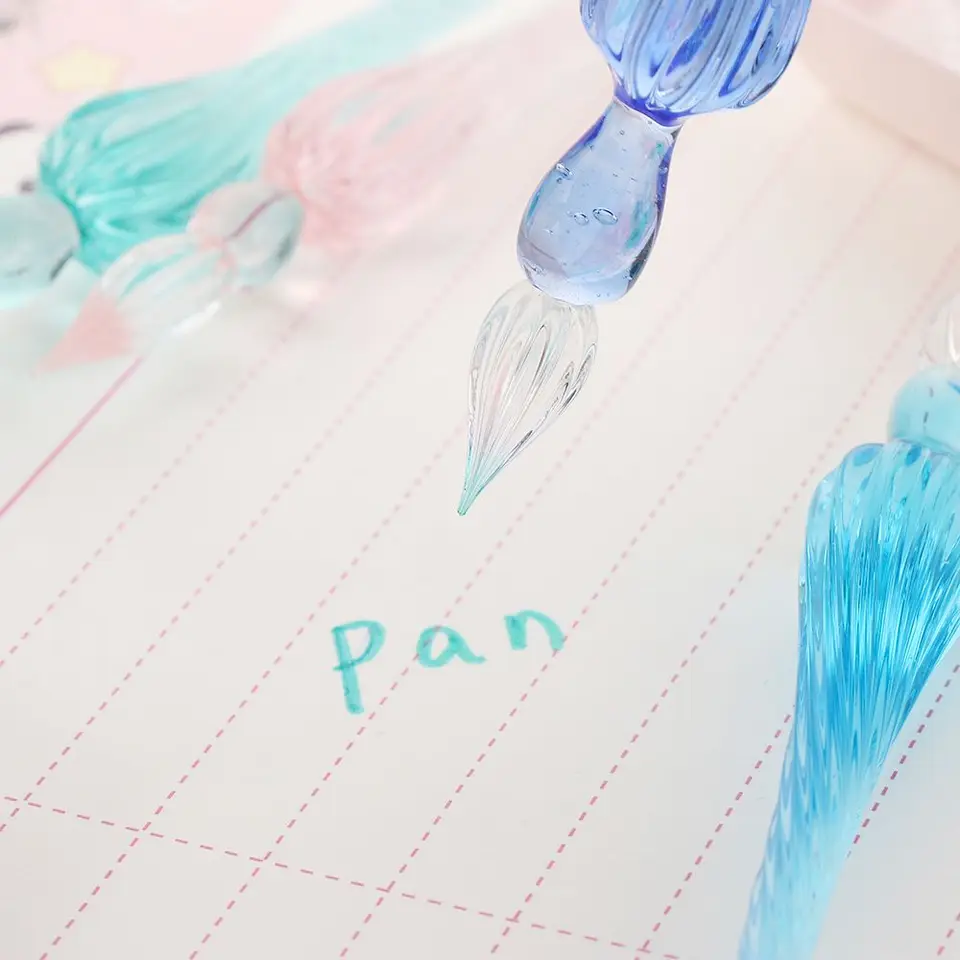 2 Pcs Tauchstift Aus Glas Farbiges Kristallstift Kalligraphie-stifte