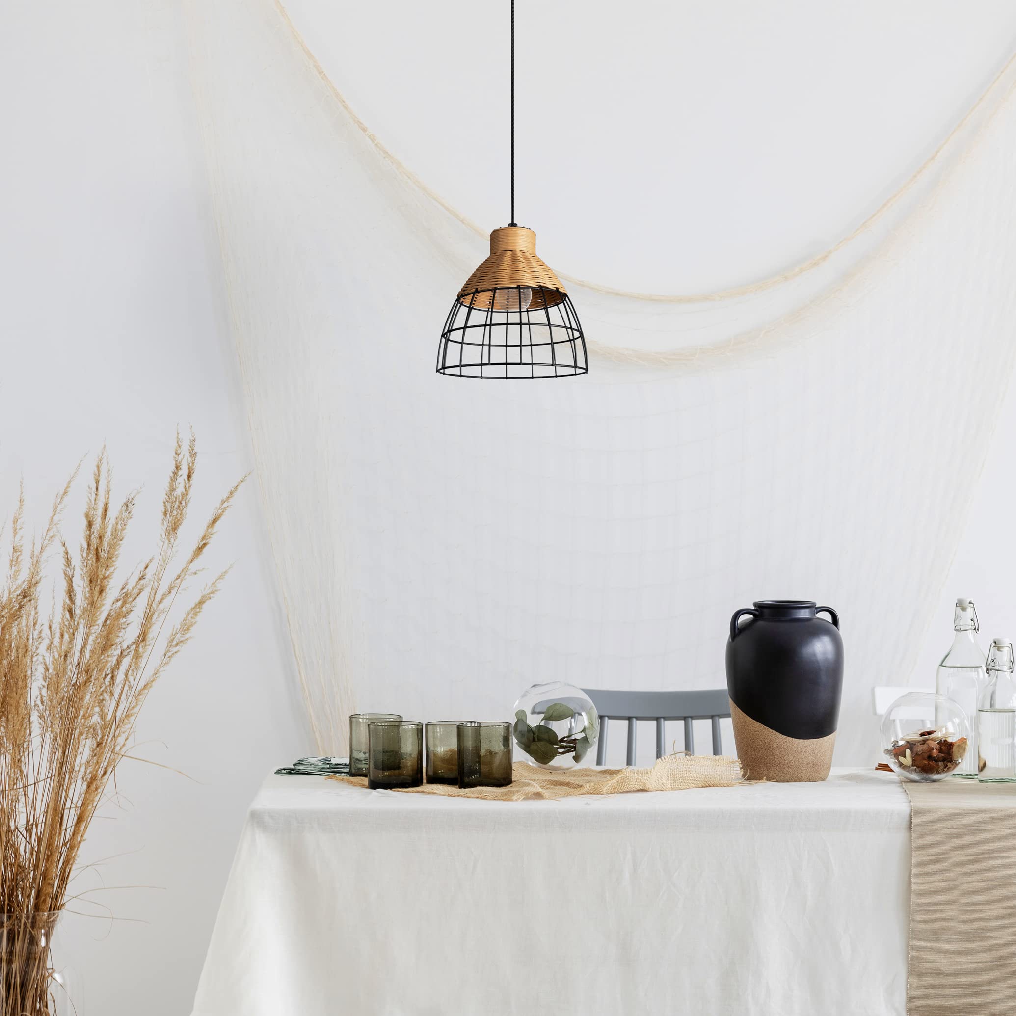 Hergestellt aus stabilem Stahl und verziert mit einem fein gearbeiteten Geflecht aus Rattan oder Papier, passen sie perfekt in jede Umgebung. Die Leuchten sorgen für ein angenehm helles und aufgebrochenes Umgebungslicht und sind sowohl als Pendelleuchte als auch als Tischleuchte erhältlich Montage Werkzeuglose Montage Diese Leuchte ist bei der Anlieferung bei Ihnen bereits fertig montiert und es muss lediglich das gewählte Leuchtmittel befestigt werden. DER SERVICE - Uns liegt Ihre Zufriedenheit natürlich immer am Herzen! Paco Home - Entdecken Sie unsere Leuchten! Die fein gearbeitete Struktur passt außerdem ideal in minimalistischen Skandi-Stil und findet auch im rustikalen Industrial-Look den richtigen Platz. DER STIL - Modern, trendig und vielseitig - die Leuchten lassen sich problemlos mit den angesagtesten Inneneinrichtungen kombinieren. Modern & trendig Mit unseren hochwertigen Wohnaccessoires liegen wir nicht nur voll im Trend, sondern kreieren neue und moderne Wohnideen für Ihre vier Wände. DAS MATERIAL - Die Leuchten sind aus stabilem Stahl gefertigt, der mit robustem Rattan oder hochwertigem Papier kombiniert wird. Die Leuchte wird außerdem mit hochwertigen fischer® DUOPOWER Dübeln und Schrauben geliefert, die bestmöglichen Halt an jeder Decke garantieren. Eigenschaften & Material Rattan Rattan, das aus der Rotangpalme gewonnen wird, ist ein robustes Naturmaterial, welches besonders durch die Langlebigkeit, Stabilität und das geringe Gewicht überzeugt. Paco Home Rattan Pendelleuchte Wohnzimmer Tischleuchte Boho Style Kaefig Lampe Esstischlampe Nachttischlampe Metall E27 Lampenart Tischleute Typ 1 Farbe Schw Schwarz Bbbb92c5 8216 5b62 B9ed A6913affa9de Boho Der angesagte Stil der Bohême kombiniert klassische Designs mit moderner Optik und wirkt locker und gemütlich. Paco Home Tschleuchte PUNTO, ohne Leuchtmttel, Rattan LED Käfg Lampe Beste Treffer Amazon-Marktplatz TeppichCenter24 Paco Home Rattan Pendelleuchte Wohnzimmer Tischleuchte Boho Style Käfig Lampe Esstischlampe Nachttischlampe Metall E27, Lampenart:Tischleute - Typ 4, Farbe:Schwarz (24cm) 66876_mfn Temperatur Diese Leuchte ist für eine maximale Umgebungstemperatur von +45 °C ausgelegt. Trendleuchten Skandi Dieser angesagte Einrichtungsstil kombiniert schlichte Muster und helle Farben zu einer gemütlichen Atmosphäre. In Verbindung mit einem dimmbaren Leuchtmittel und kompatiblem Dimmer, können Sie die Helligkeit je nach Wunsch und Gefühlslage an Ihre Bedürfnisse anpassen. Große Auswahl Geschmäcker sind bekanntlich verschieden, deshalb bieten wir mit unserer großen Auswahl für jeden das Richtige. Retro Im Retro-Stil dreht sich alles um klassische Designs, die auch heute noch begeistern und in modernem Flair glänzen. Atmosphäre Dezente Optik und filigrane Verarbeitung werden in den unterschiedlichsten Inneneinrichtungen zum echten Eyecatcher und begeistern in den angesagtesten Wohnstilen mit ihrem modernen Design.