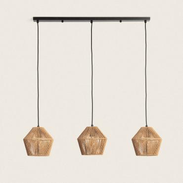 LEDKIA LIGHTING Pendelleuchte Geflochtenes Papier Kirito 3 Strahler Natürlich E27