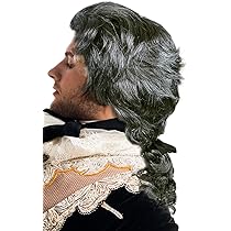 Perücke Gelockt Zopf Barock Musiker Schwarz MJ-4