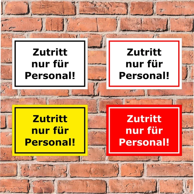 Werkstatt Schild Personalisiert Tu00fcrhinweisschild Nur Fu00fcr Mitarbeiter Eingang Schild Die Schilder sind erhältlich in folgenden Varianten: Material: Aufkleber 3mm Hartschaumplatte 3mm Aluminiumverbundplatte (aussen Aluminium, innen ein Kunststoffkern jeweils mit Hochleistungs PVC-Folie und zusätzlichem mattem UV-Schutzlaminat für eine hohe Kratzfestigkeit sowie eine sehr gute und reflektionsfreie Lesbarkeit beklebt. Weitere Schilder finden Sie in unserem Amazon Shop Sollten Sie nicht fündig werden, kontaktieren Sie uns gerne über das Verkäuferkontaktformular für ein individuelles Angebot. Zutritt nur für Personal! ACHTUNG !, !, ! auffälliges Hinweis-schild / Verbots-schild, dass dieser Bereich nur von Angestellten oder Mitarbeitern betreten werden darf Hinweise: Montagematerial nicht im Lieferumfang enthalten. Es gibt die Schilder in den Materialen Hartschaum und Aluverbund, verwendbar zum kleben oder schrauben, etwa als Straßenschild, Wandschild oder Zaunschild. an der Hauswand oder dem Garagentor. Melis-Folienwerkstatt Aufkleber - Zutritt nur für Personal - 15x10cm – S00080-110-A 20 VAR. günstig auf Bei Bestellung über diese Anbietern bestellen, bekommen Sie nur gefälschte Produkte oder sogar überhaupt keine Ware! Zutritt nur für Mitarbeiter Schild | Weiss/Rot Maße: 15x10cm 30x20cm 45x30cm 60x45cm - weitere Größen auf Anfrage. Text des Schildes: Zutritt nur für Personal Die Ecken sind nicht abgerundet. Der Druck ist UV-und witterungsbeständig, kratzbeständig und daher speziell auch für den Ausseneinsatz geeignet, bspw. Zutritt Nur Für Personal Hinweisschild Zutritt Nur Für Personal Verbot
