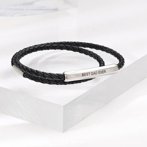 PJ JEWELLERY 2 STÜCKE Personalisierte Kundenspezifische Gravierte Edelstahl Geflochtene Leder ID Manschette Armbänder Für Männer Und Frauen, Schwarz, 7,0