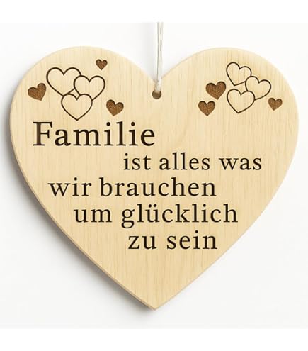 Pet-Jos Holzherz Herz Schild Dekoschild Holzschild 10 X 10 Cm Geschenk Für Die Familie Spruch Geschenk Holz Geschenk EIN Geschenk Für Die Familie