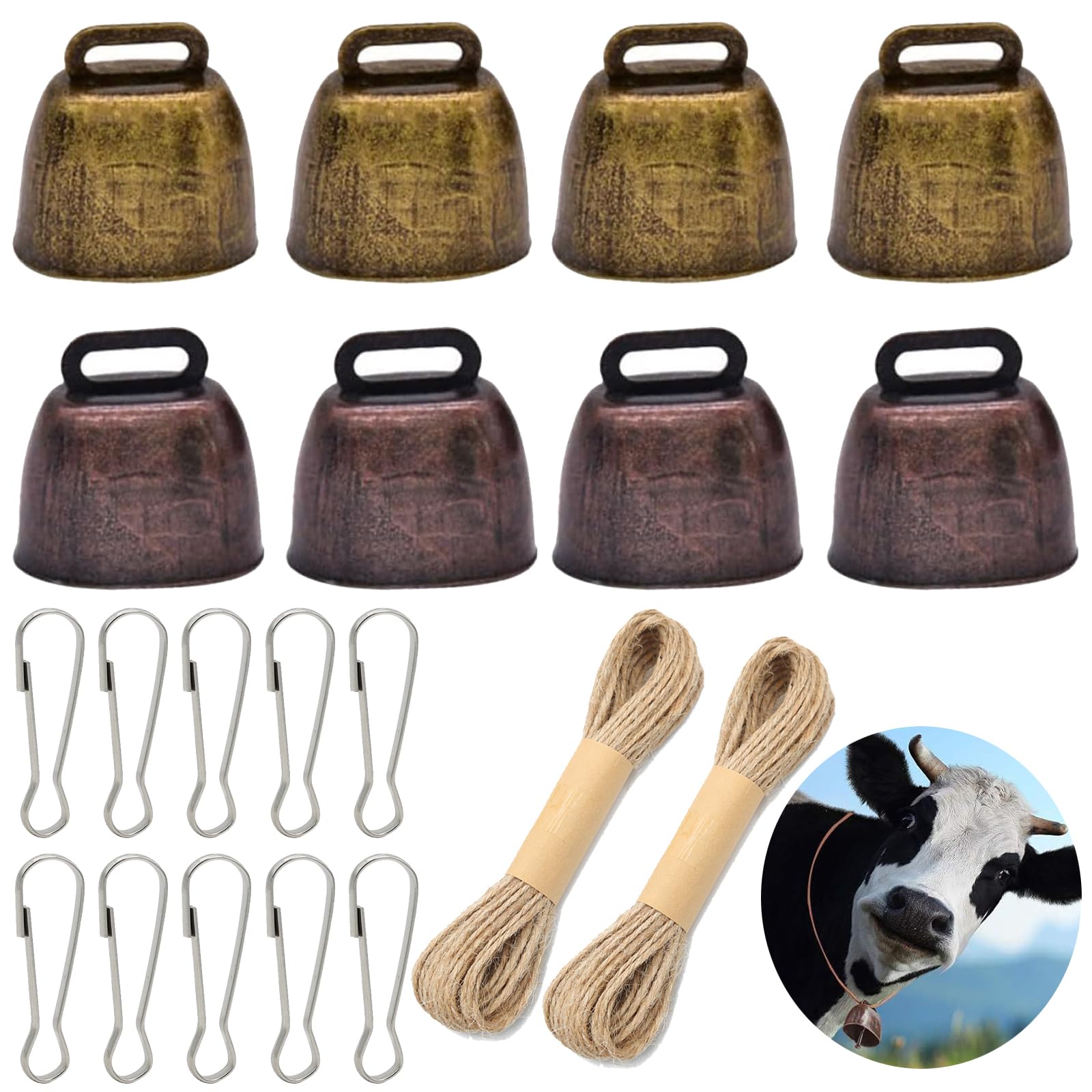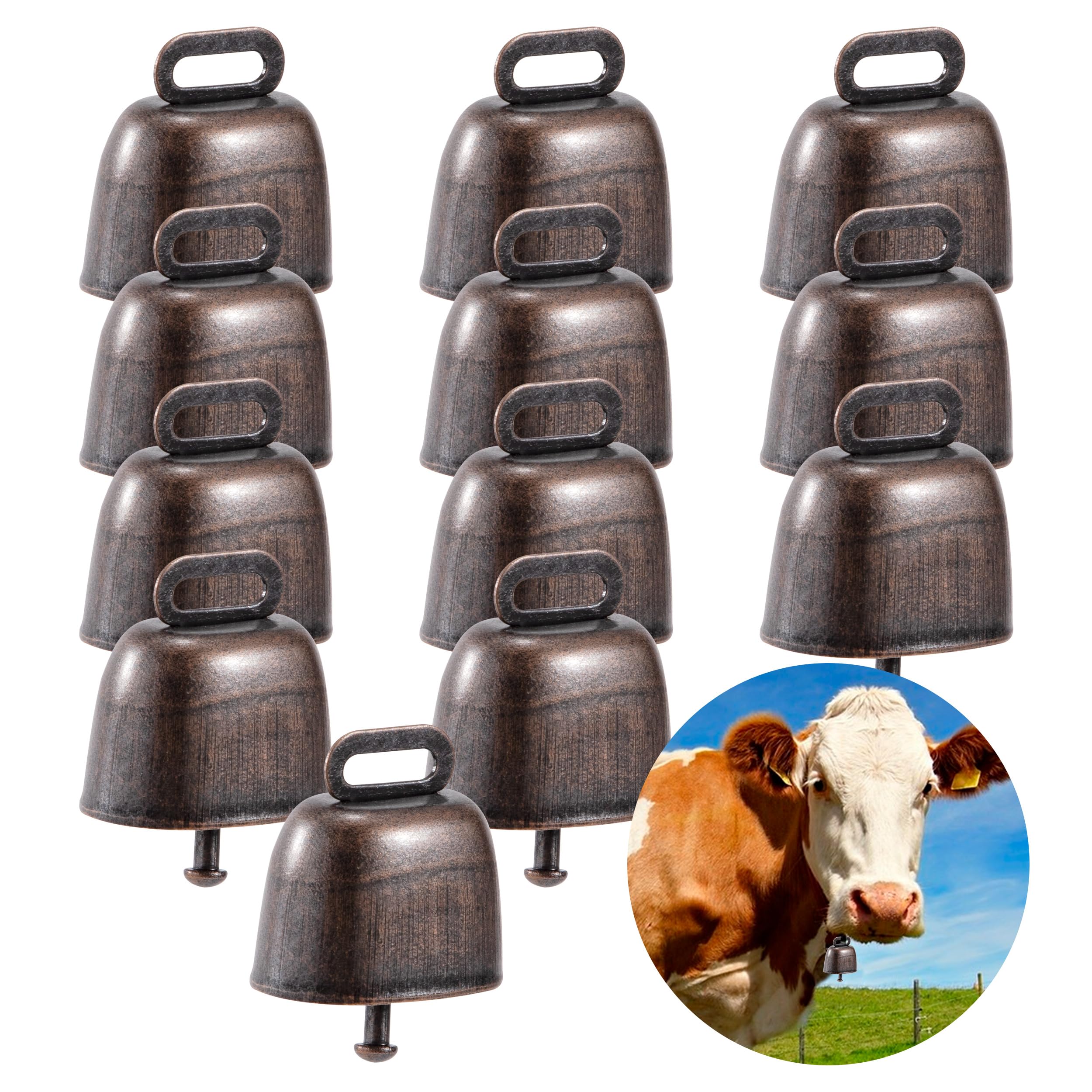 SWTHM 30 Stück Kuh, Pferd, Schaf Weide Glocken, Kupfer, Antiker Stil, Metall, Klar & Laut, Rinder, Bauernhof, Tier, Messing, Bronze, Rotkupfer, Anti- Diebstahl