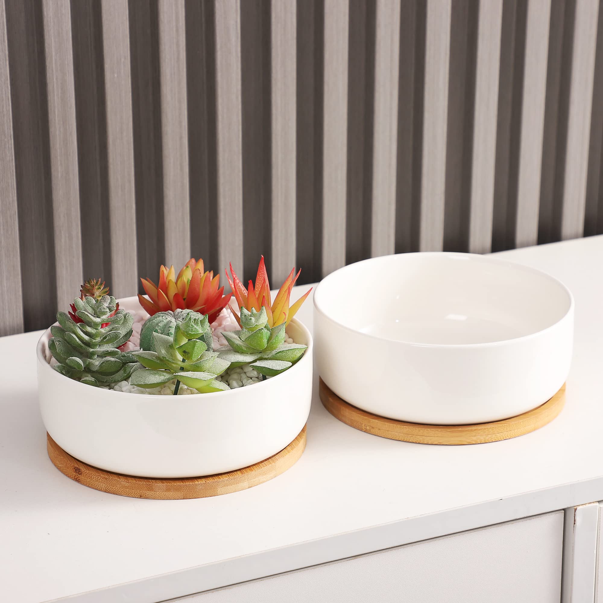 Charmante Keramik-Sukkulenten-Pflanzgefäß Mit Bambus-Tablett