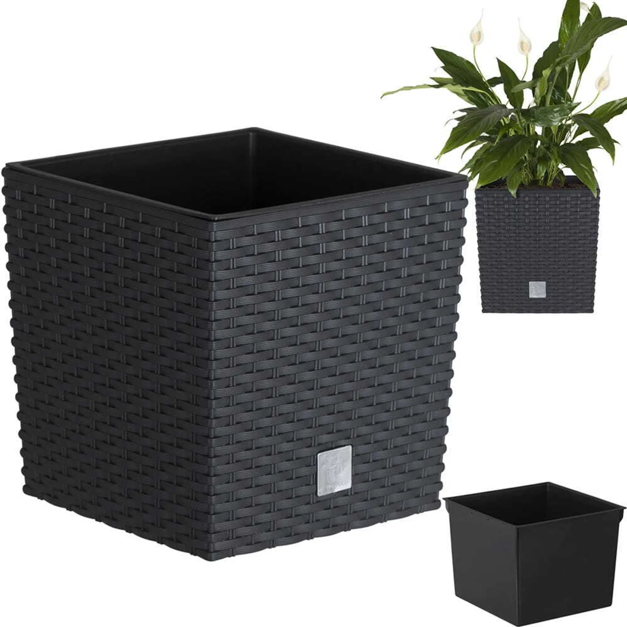 Vase Anthrazit Pflanztopf Rattan-Optik Anthrazit 30cm H50cm Blumentopf 15l Blumentopf Blumenkübel Rattanoptik Pflanztopf Die Töpfe lassen sich einzeln und in Gruppen arrangieren und Rato Tubus fungiert in Gruppen als Raumteiler. Direkt bepflanzbar dank dem praktischen Pflanzeinsatz Das Material ist wie beim natürlichen Vorbild verflochten und wirkt durch seine nach unten verjüngende Form sehr grazil. Blumenkübel in moderner Rattan-Optik RATO Tubus Er lehnt sich an die mediterrane Gestaltung von Balkon, Terrasse und Garten an und kann durch die Nutzung von wetterbeständigem Kunststoff das ganze Jahr über im Freien stehen bleiben. Pflanzsäule in Rattan-Optik, mit herausnehmbarem Einsa... Prosperplast Pflanzkübel »Rato Square« in fein ausgearbeiteter Rattanoptik. Diese Pflanzsäule sorgt für eine angenehme Atmosphäre in Ihrem Heim und Garten Powertec Garden Blumentopf "Rattanoptik" eckig - ca.6,6 Liter, Anthrazit Witterungsbeständig und pflegeleicht