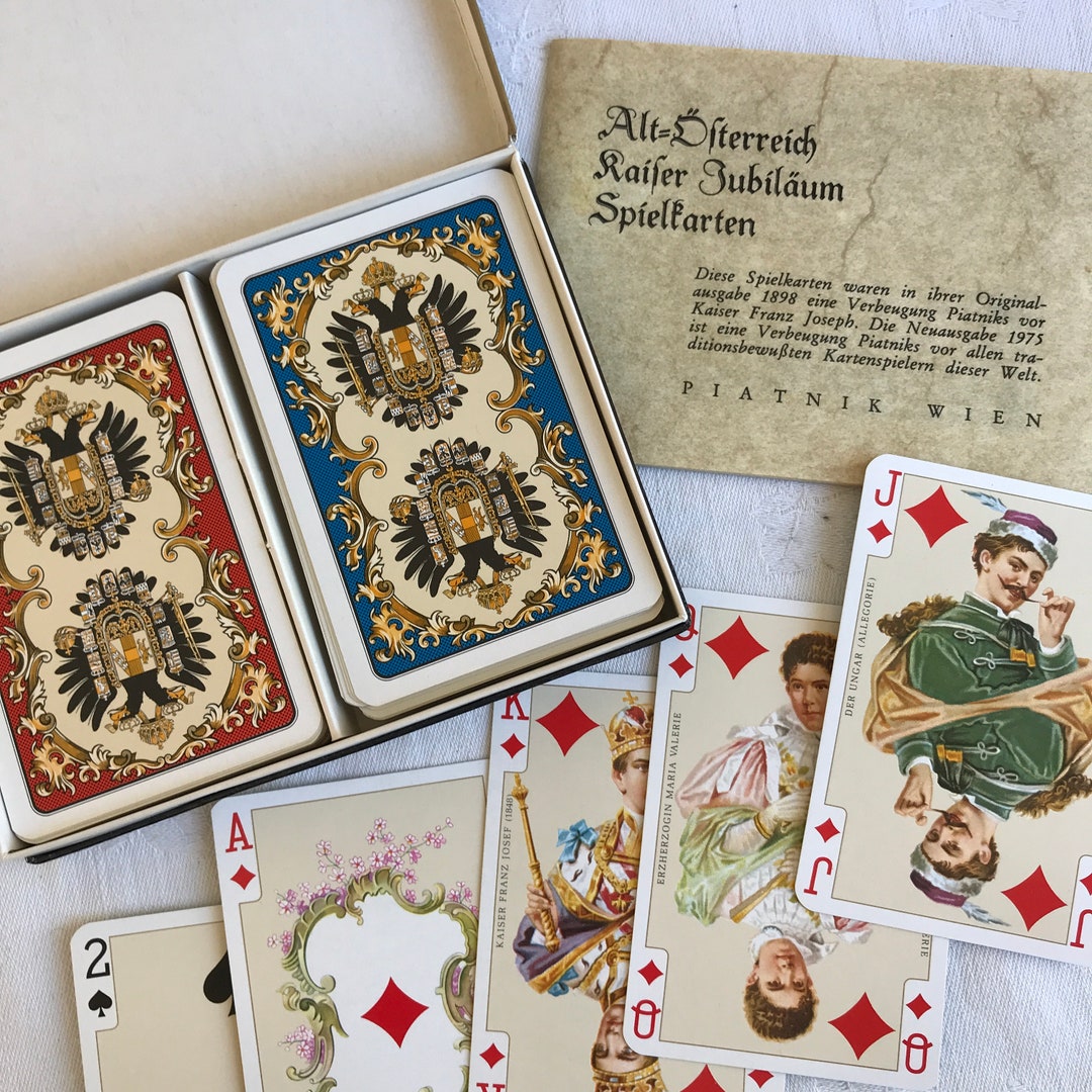 Rommé bezeichnet eigentlich eine ganze Familie von Kombinations- und Legespielen mit Karten, zu der z.B. 115 Verkauf durch: LeisureFunAndToys Piatnik Kartenspiel 213847, Kaiser Jubiläum Bridge, ab 8 Jahre, 2-6 Spieler, Französisches Bild 14,45 Nicht für Kinder unter 36 Monaten geeignet Verpackungsabmessungen (L x B x H): 18., 6 x 16., 5 x 1., 8 Zm , Material: Karton Als Ursprung gilt etwas das mexikanische "Conquian". Jolly Karten Piatnik Piatnik Designkarten Kaiser Jubiläum | Jassen Patience Karten Postkarte der Wiener Werkstätte Nr. 166: Kaiser-Jubiläum, Huldigungs-Festzug Wien 1908, Ende 16. Jahrhundert – Wien Museum Online Piatnik - 213847 Kaiser Jubiläum Bridge WK12 x sehr hochwertiges Kartenspiel Set mit je 55 Blatt- in rot und blau mit 3 Jokern und jeweils 1 Cut Card pro Kartenspiel- für lange Spielabende und unbeschwertes Spielvergnügen - für Bridge Canasta Skat Poker Doppelkopf Romm und vielem mehr
