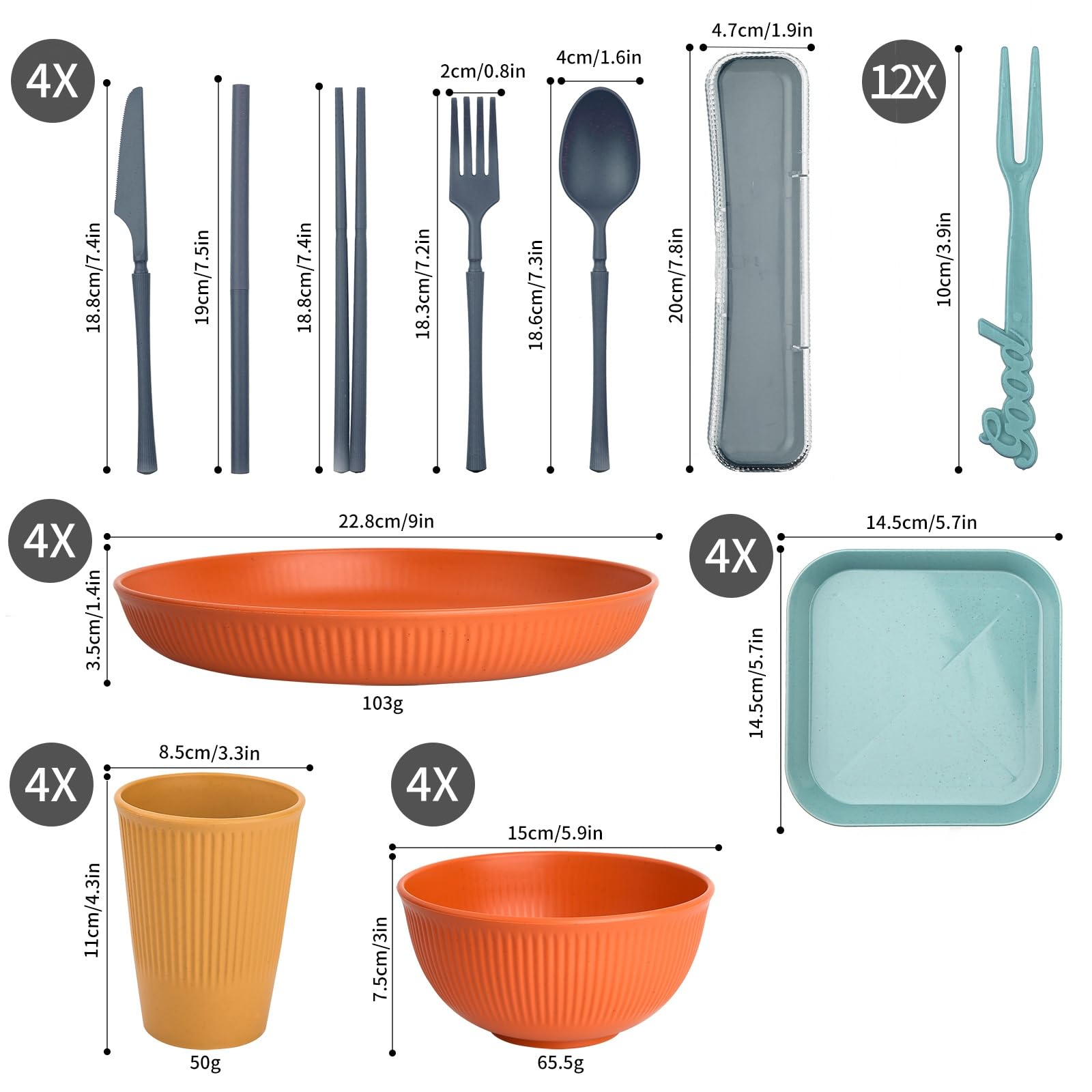 Picknick Geschirr Unzerbrechlich ZgoEC Camping Geschirr Set 49-teilig Für 4 Personen – Unzerbrechlich, Stapelbar – Mit Tragetasche Campingbesteck Set Spülmaschinenfest