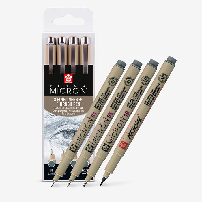 Pigma Micron Sakura Pigma Mikron Stifte, 4 Stück 02 Schwarz Pigma Micron Fineliner Pigma Micron Pinsel: robuster Kunststoffkörper mit einziehbarem Clip für einfaches Tragen Pigma Micron Brush: wasserfester schwarzer Tintenstift mit Keilspitzenpinsel für präzises Auftragen SAKURA Pigma Micron Fineliner Set - 4-teilig Light Cool Gray - Inklusive 01/05/10 & Pinselstifte - Schnell trocknende wasserfeste Tinte - Ideal für Illustrationen & Bullet Journale Pigma Micron Fineliner 04 - Schwarz 0,4 mm Bruynzeel-Sakura XSDK04 Pigma Micron Pinsel: gleichmäßiger Tintenfluss und schnell trocknende Tintenformel Das Set besteht aus Pigma Micron 01 (0,25 mm), Pigma Micron 05 (0,45 mm), Pigma Micron 10 (0,60 mm) und Pigma Brush – alle in Cool Grey.Mit diesen