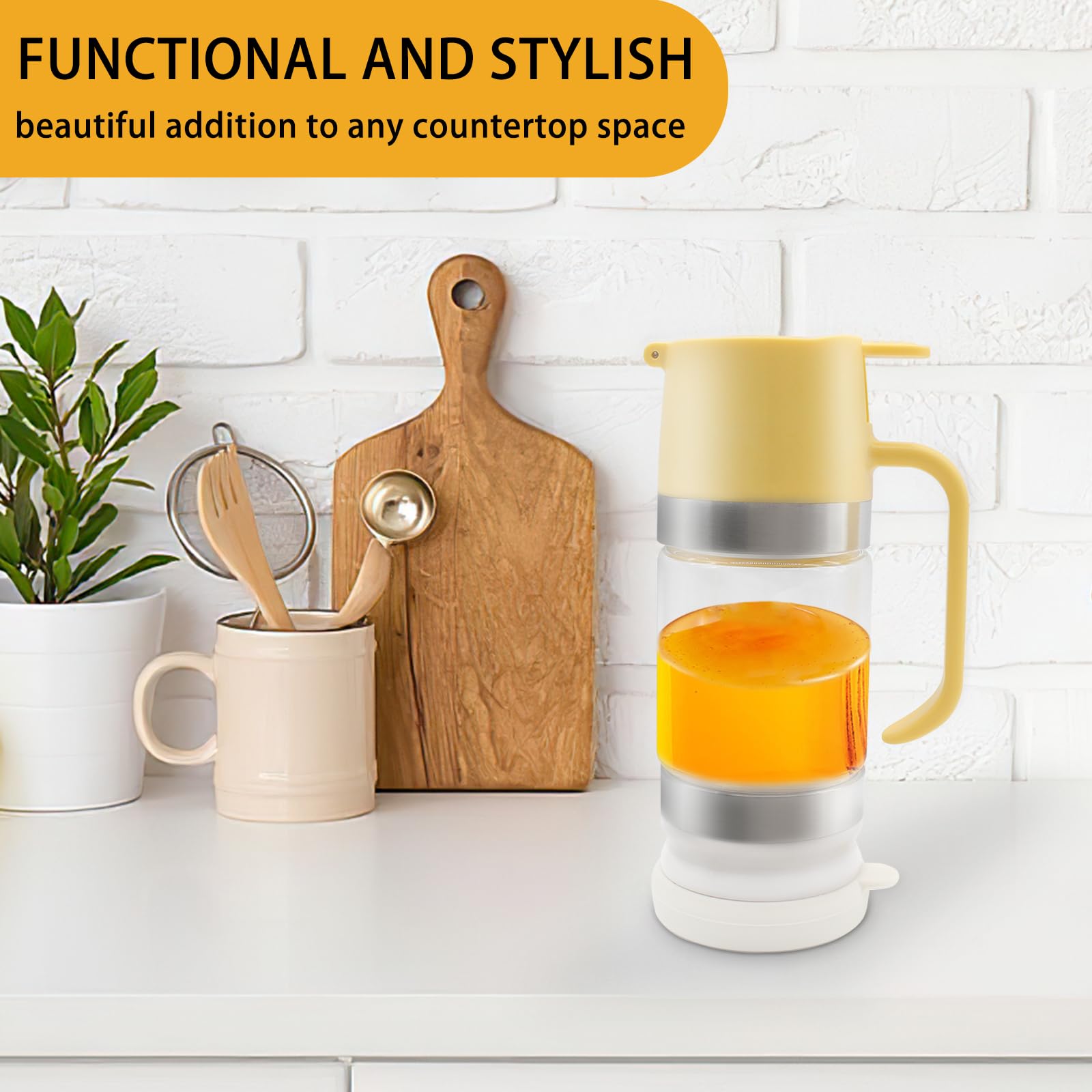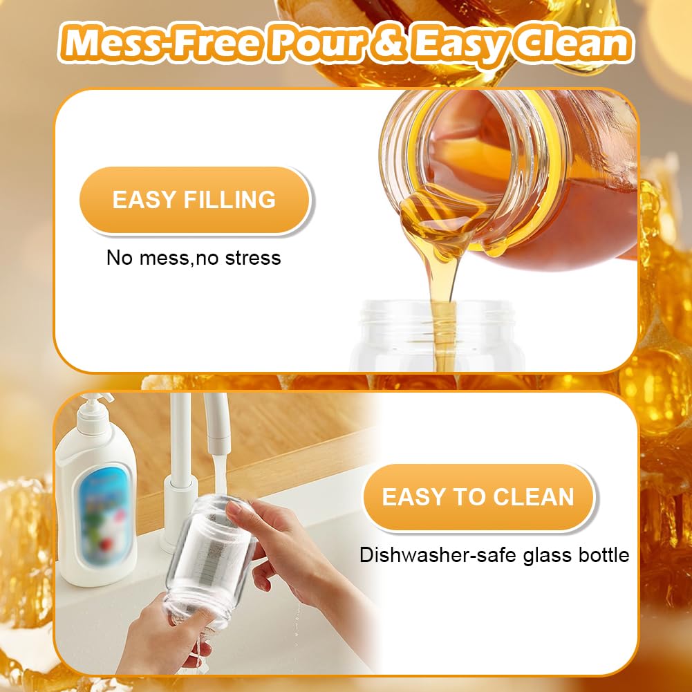 PinDaito Honigspender Glas Tropffrei, 300 Ml Honigglas Mit Griff, Sirup Spender, Abnehmbare Honigspenderglas Aus Glas, Ideal Für Honig Und Sirup, Sojasauce Andere Flüssigkei, Küchenzubehör, Gelb