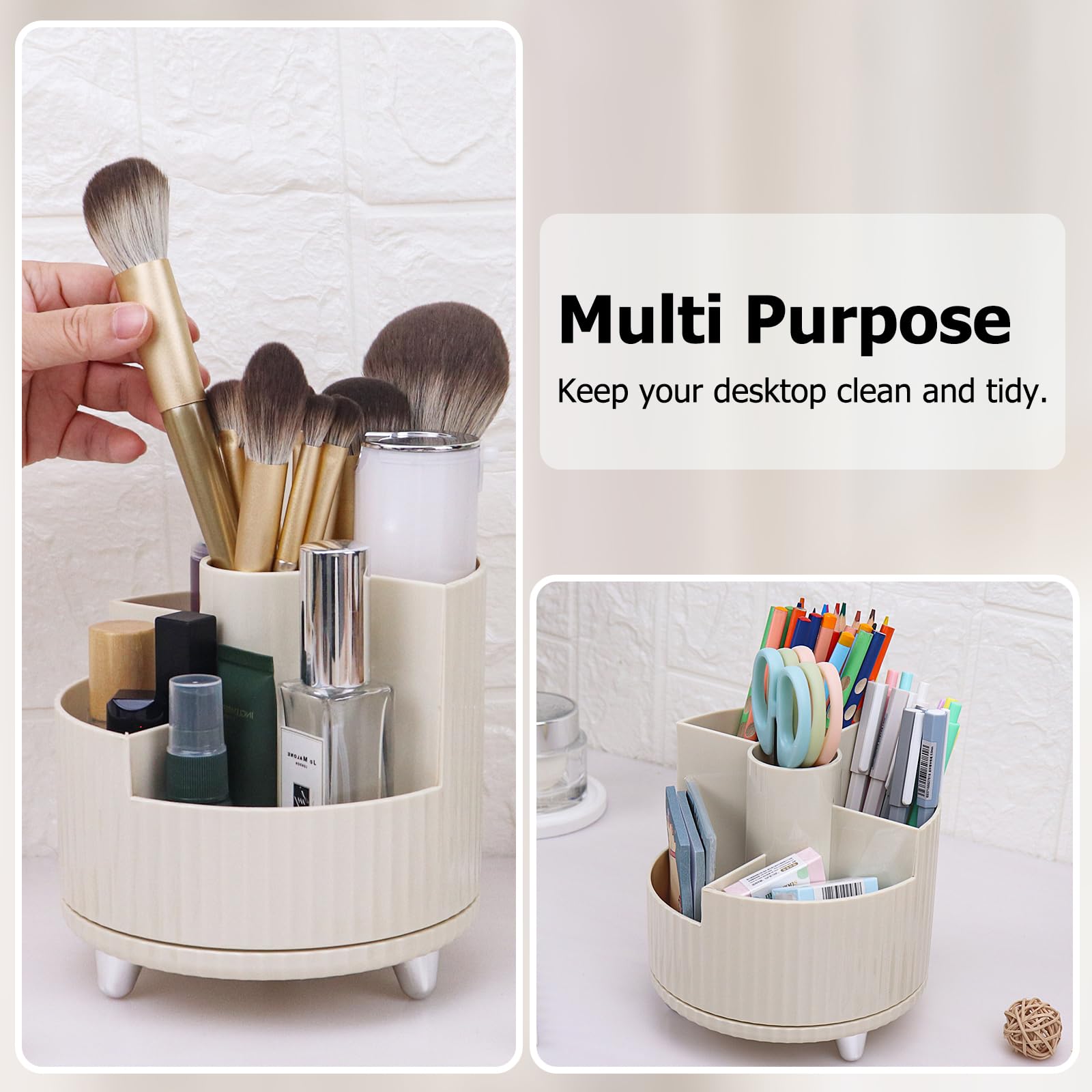 Dieser wunderschöne Stil verleiht diesem drehbaren Organizer einen schönen Look, der sich in das Aussehen jedes Büros oder Hauses einfügt. Kompaktes und drehbares Design: Die kompakte Größe und die drehbaren Abschnitte ermöglichen einfachen Zugriff auf verschiedene Make-up-Werkzeuge, während Ihre Schminktisch-Theke organisiert bleibt. Schmink Organizer WILL OAK Make-up-Pinsel, Eyeliner, Nagellack-Halter, Drehbarer Make-up Pinselhalter Kosmetik Dieses Deluxe-Set wurde entwickelt, um Ihr Schönheitsprogramm zu optimieren, bietet reichlich Stauraum für alle Ihre Make-up-Utensilien und verleiht Ihrem Schminktisch einen Hauch von Eleganz. Große vielseitige Aufbewahrung: Dieser Kosmetik-Organizer bietet praktische Aufbewahrung mit 5 offenen Schubladen für Make-up-Pinsel, Eyeliner, Augenbrauenstifte, Nagellack, Lippenstifte und mehr. Seine kompakte Größe passt bequem auf jeden Waschtisch oder jede Badezimmertheke. Drehen Sie einfach die oberste Schicht, um auf den gewünschten Gegenstand zuzugreifen. Langlebige und hochwertige Konstruktion: Hergestellt aus stabilem ABS-Kunststoff, hält dieser Organizer dem täglichen Gebrauch stand und hält Ihre Beauty-Werkzeuge staubfrei und geschützt. WILL OAK Make up Pinsel Organizer – Kosmetik Organizer mit großem 【Bestes Geschenk】Dieser schöne Hautpflege-Organizer ist ein bestes Geschenk für Freunde, Freundinnen, Ehefrauen, Mütter für alle Arten von Jubiläen, Festivals oder Geburtstagen, sowie ein Muss für Mädchenwohnheime, Küchen und Wohnungen. Mit mehreren Staufächern organisiert dieser Organizer alle wichtigen Dinge ordentlich an einem praktischen Ort. Perfekt organisierter kosmetikorganiser mit Staubschutz und 5 integrierten Fächern für Make-up-Pinsel, Augenbrauenstifte, Eyeliner, Mascara, Lippenstifte usw... Verabschieden Sie sich von unordentlichen Arbeitsplatten und begrüßen Sie organisierte Glückseligkeit. Dieser drehbare Make-up-Organizer bietet eine ordentliche Aufbewahrungslösung für all Ihre Kosmetika. Sein einzigartiges drehbares Design hält Ihre Pinsel und Werkzeuge ordentlich organisiert und leicht zu finden Verbessern Sie Ihre Schönheitsroutine mit unserem drehbaren Make-up-Organizer-Set.