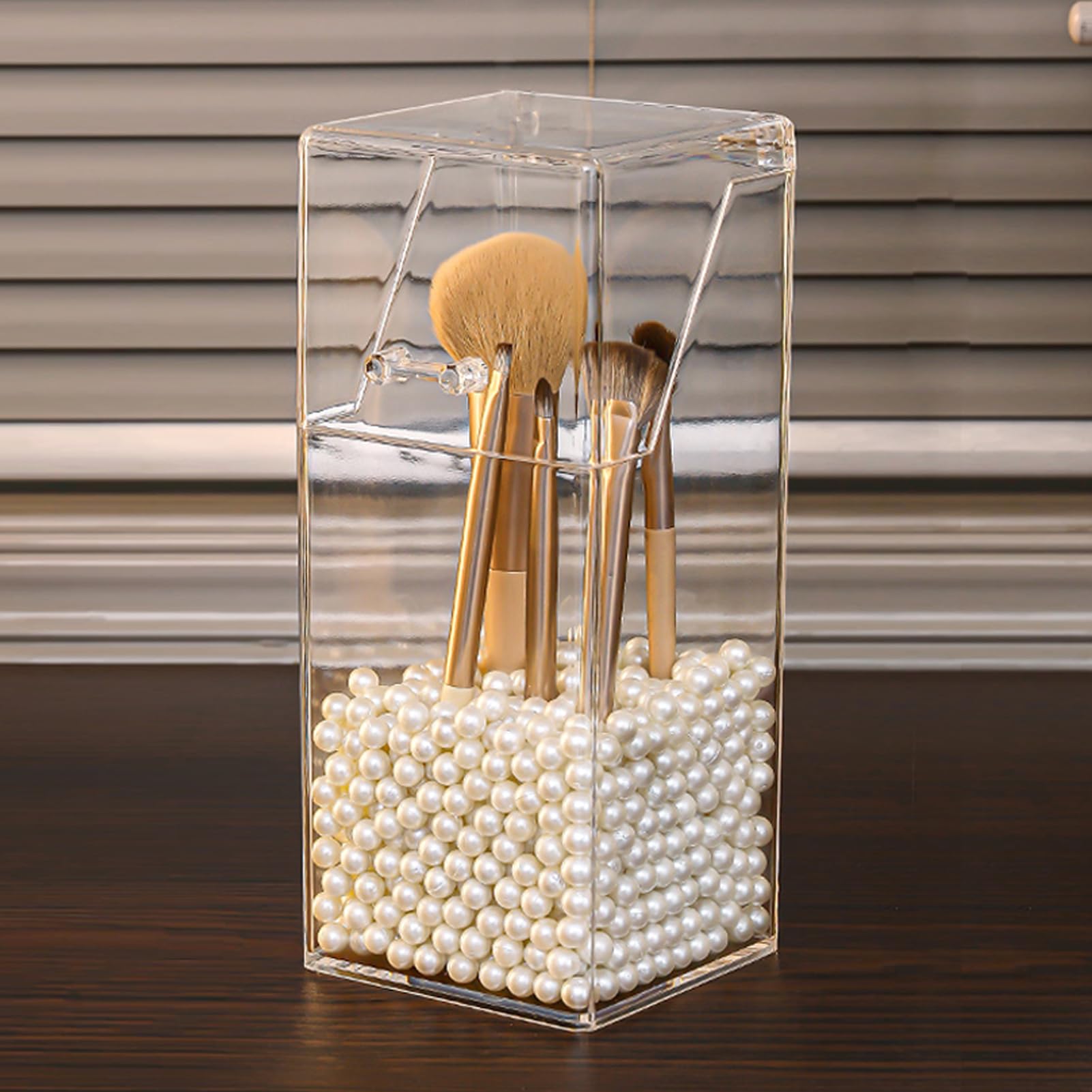 Make-up-Pinselhalter Aus Glas Mit Perlen, Kunststoffeinfassung, Make-up- Pinsel-Organizer, Transparente Kosmetikpinsel-Aufbewahrungsbox, Staubdicht, Sechseckig, Schwarz