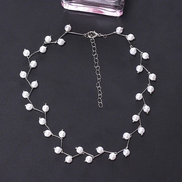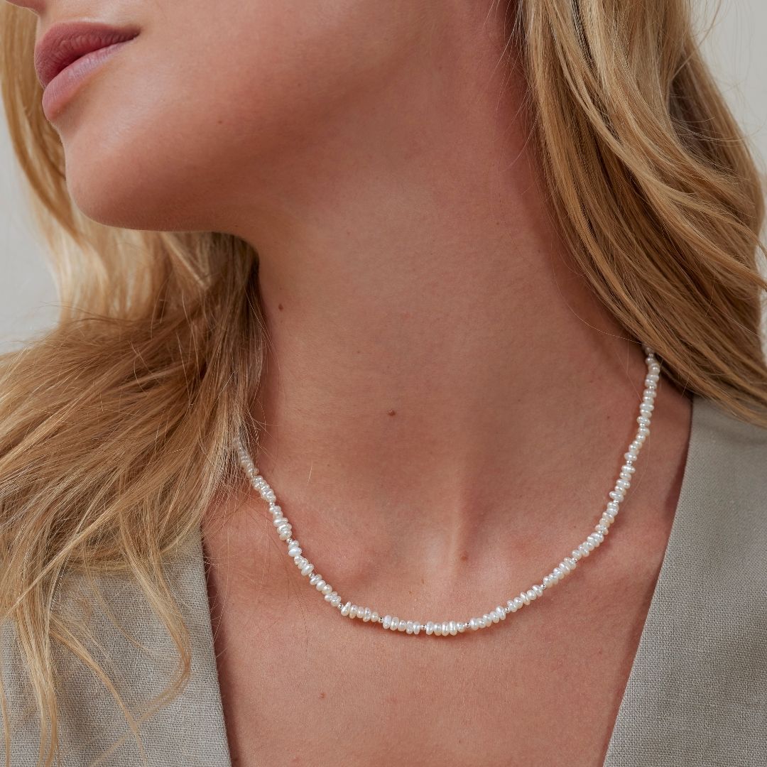 Kleine Perlenkette Mit Plättchen, Damen, Weiß - Silber/gold/rosè