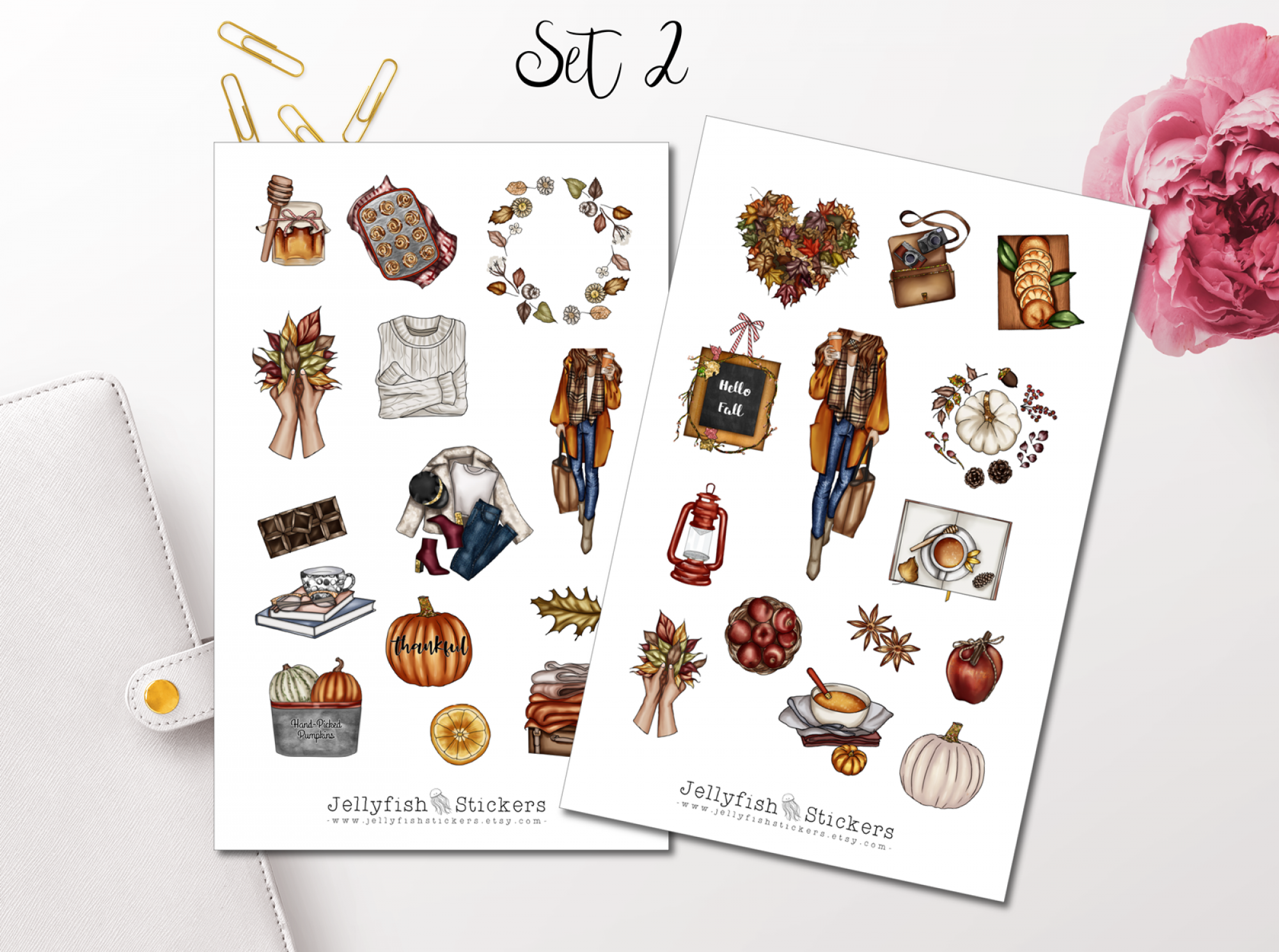 Herbst Mädchen Sticker Set | Aufkleber | Journal Sticker | Planersticker | Mädchen Sticker | Sticker Thanksgiving, Blätter, Kürbis