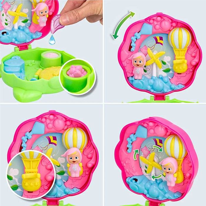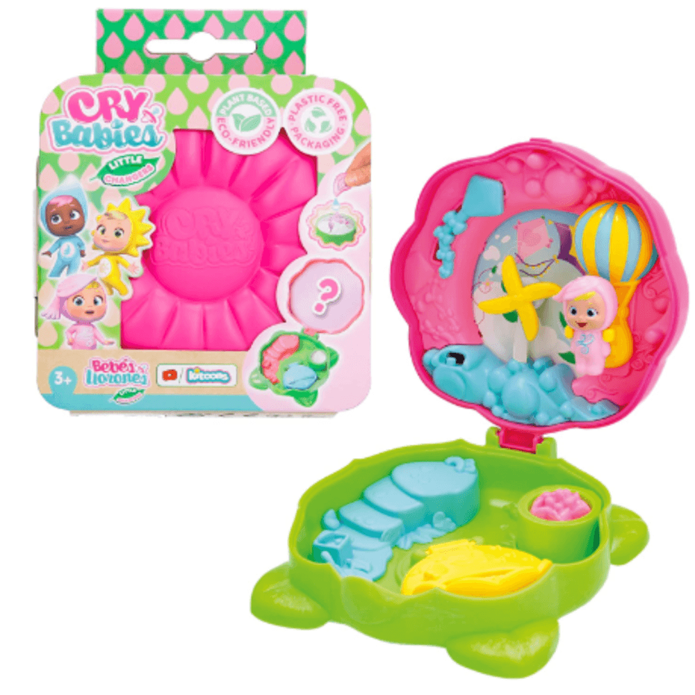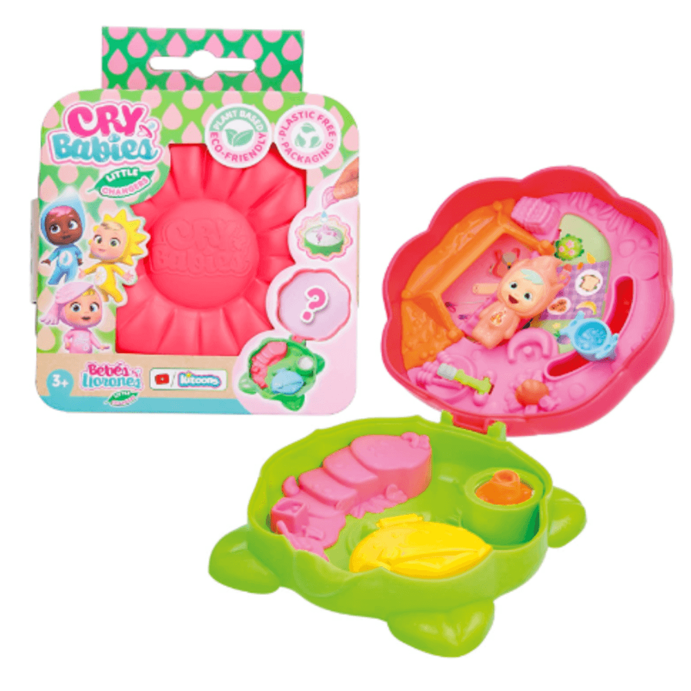 Kids can add six new characters to their Cry Babies collection – Greeny, Sparky, Aqua, Sunny, Moon, and Windy. Each Little Changer comes in a mini flower capsule that opens to reveal a personalized world with four unique activations and a fun water reveal CRY BABIES ECO FRIENDS PRE24, IMC904071 Baby Cry Puppe Playset IMC Toys Cry Babies Little Changers Greeny Cry Babies Magic Tears