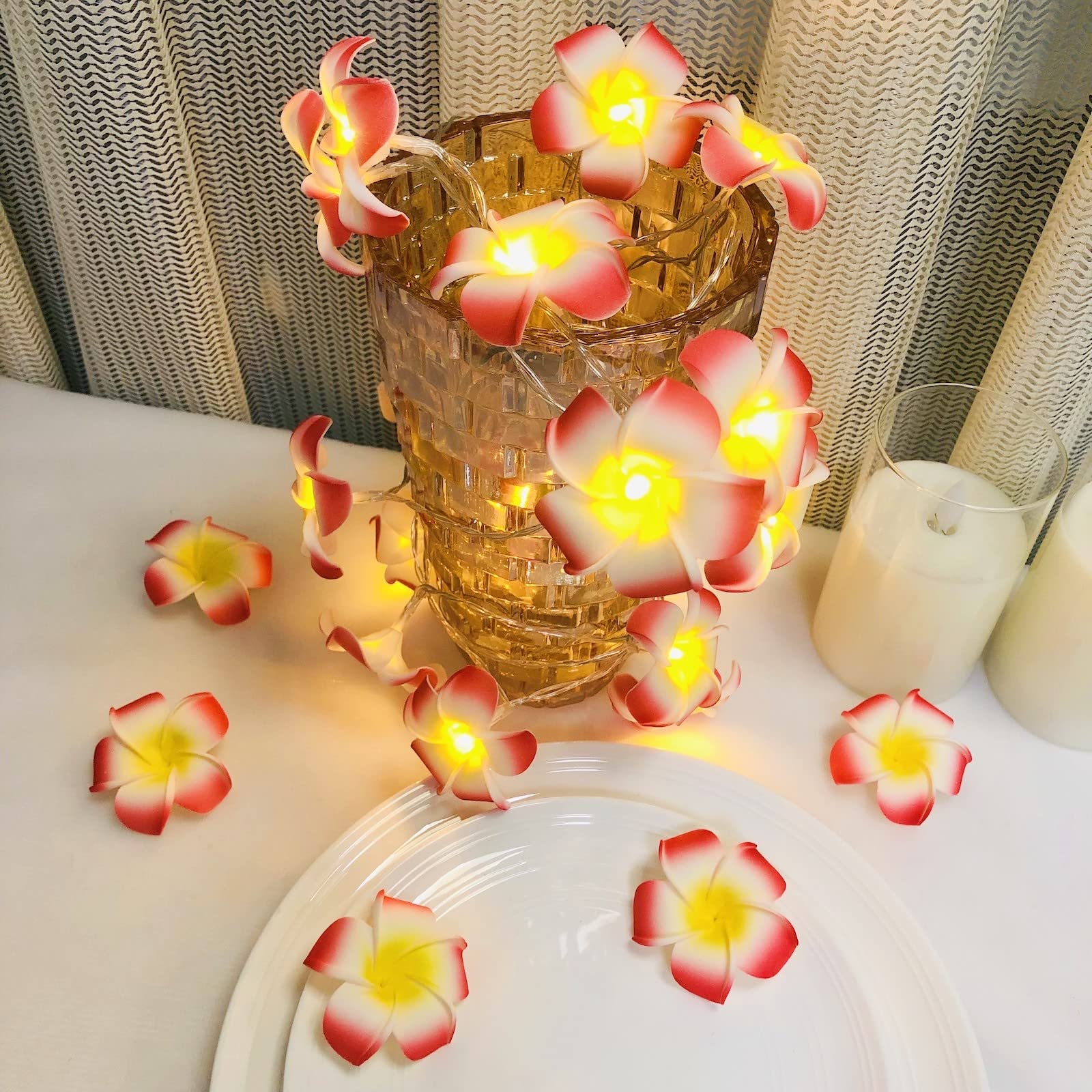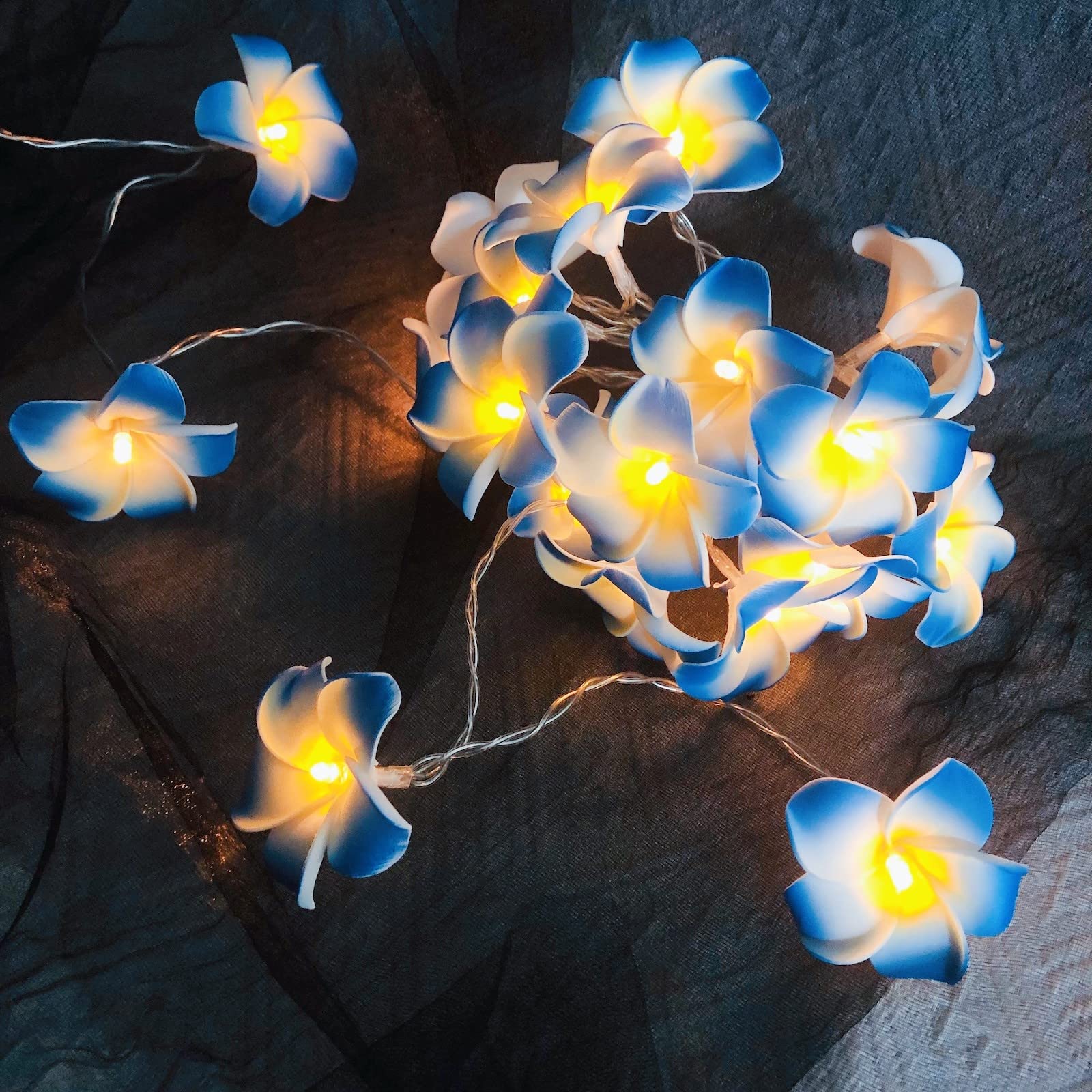 Künstliche Plumeria LED-Lichterkette - Batteriebetriebene Feen Nachtlichter Fuer Weihnachtsfeier Hochzeit Stranddekoration Hawaiianischer Frangipani Schaumblumen 3m20led Weiss 23269