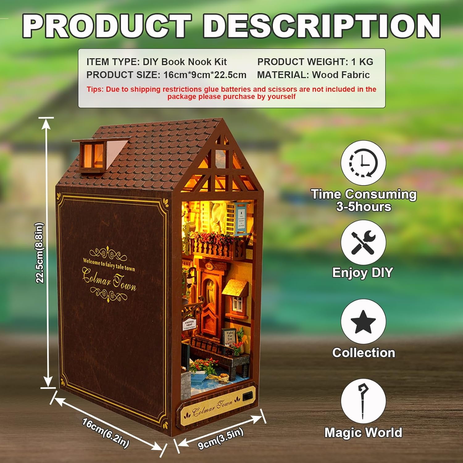 Plustopoy DIY Book Nook Kit, DIY Dollhouse Booknook, Book Nook