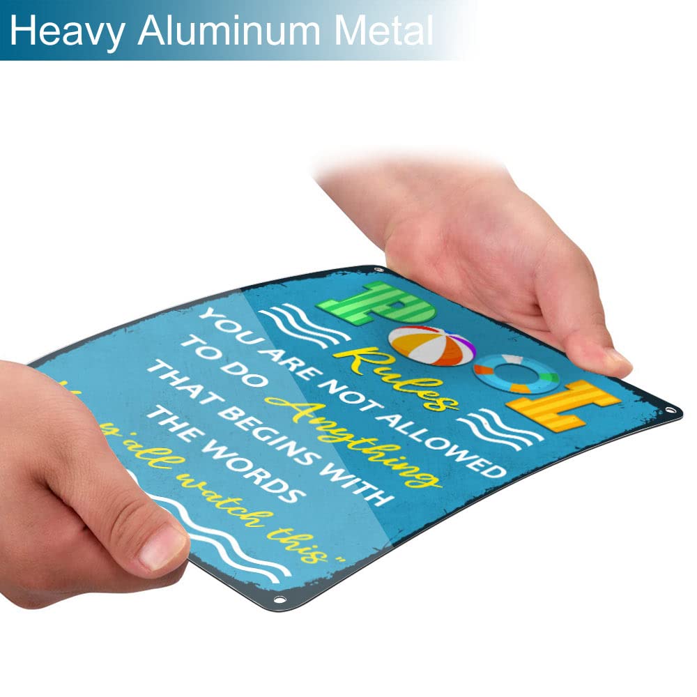 【Schnelle Installation】 Vorgebohrte Löcher und verstärkte Rückseite vereinfachen das Aufhängen von Pool-Regeln an Zäunen oder Wänden. Produktgröße: 30 x 20 cm. Langlebige Schwimmverbotsschilder sorgen für die Einhaltung von Regeln in gewerblichen und aquatischen Bereichen Warn Kaufen Blechschild Mit Poolregeln, Pooldekoration, Metallschild, Pool Schilder Für Pools Wasserparks und Schwimmbäder auf Wetterfeste Konstruktion: Hergestellt aus rostfreiem Weißblech, widerstehen diese Poolschilder Verblassen, Wasserschäden und UV-Strahlung. Robuste Pool-Sicherheitsschilder sorgen für jahrelange Sichtbarkeit im Freien Klare Sicherheitshinweise: Fettgedruckte Schilder für Schwimmbäder, Strände oder Decks. Vielseitig einsetzbar: Vielseitige Pool-Warnschilder für Wasserparks, Seen, Docks oder Wohnpools. Diese Schwimmverbotsschilder verfügen über permanente, wetterbeständige Gefahrenwarnungen für den öffentlichen und privaten Gebrauch Lustiges Schild mit Poolregeln, Retro-Look, Aluminium-Metallschild für Schwimmbad-Regel-Schild aus 20,3 x 30,5 cm. Einfache Installation: Schwimmbad-Regel-Schild, leichtes, aber langlebiges Pool-Schild mit 4 vorgebohrten Löchern zum einfachen Aufhängen an der Wand oder verwenden Sie Befehlsstreifen oder doppelseitiges Klebeband