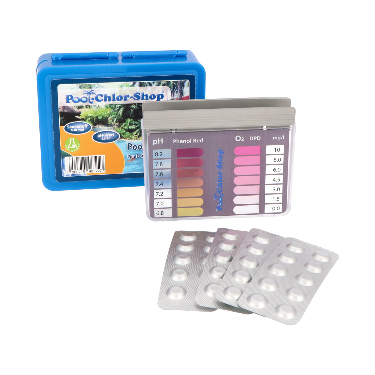 Schnelllösliche Reagenzien Made in Germany , Grafische Gebrauchsanleitung Pool-i.d PTM200 Pooltester Mini Aktivsauerstoff MPS/pH - Kostenloser Versand ab 29€. Jetzt bei bestellen d PTM200 Pooltester Mini Aktivsauerstoff MPS/pH Ph Test Pooltester Manuell Sauerstoff & PH Aktivsauerstoff Tester Einfach zu handhabender Schnelltest , Verlässliche Messergebnisse Pooltester für Chlor, Brom, Alkalinität und pH-Wert jetzt kaufen Pooltester Chlor-/pH-Wert mit 60 Tabletten günstig kaufen bei POOL Total Mini-Tester (10ml) zur Messung von Aktivsauerstoff und pH-Wert inkl. 40 Tabletten. Mit jeweils 6 Skalen-Werte, hochwertig verarbeitet. Messbereiche. Wasserwerte im Pool mindestens 1x pro Woche überprüfen Die hohe Qualität Made in Germany sorgt für präzise und zuverlässige Mess-Ergebnisse.