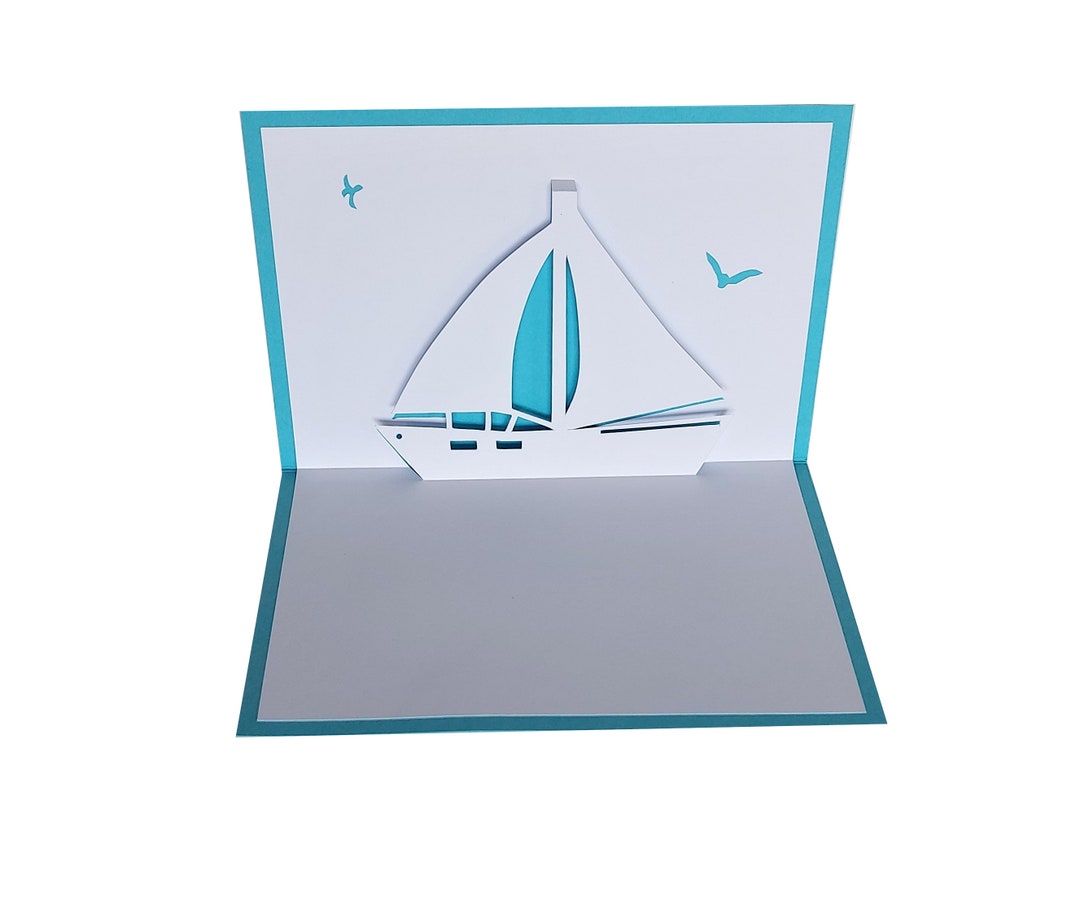 LIN17162, Pop Up Karte Urlaub, 3D Grußkarten Schiff Boot