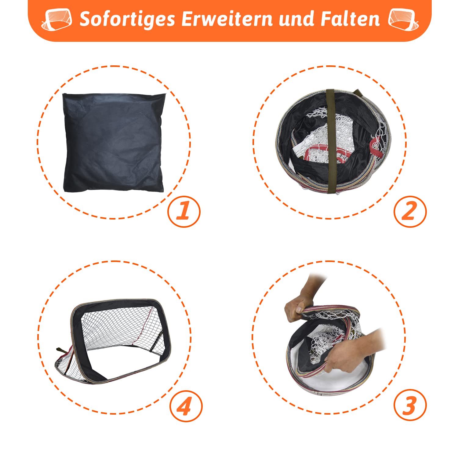 Schritte zum Zusammenklappen des Fußballtor - 1 Schritt 1: Falten Sie die beiden schrägen Seiten zusammen. Sie können es an den Strand, auf den Rasen, auf den Spielplatz, in den Park oder in den Garten mitnehmen und mit Familie und Freunden das Fußballspiel genießen. Das robuste PE-Netz hält den Stößen des Balls stand. Ideal für kinder im garten und draußen – aufstellen, spielen, wieder einpacken. Wenn das Wetter nicht zum Fußballspielen geeignet ist und Ihr Kind trotzdem spielen möchte, keine Sorge, wir haben faltbare Fußballtore, die im Innenbereich aufgestellt werden können und keinen Platz beanspruchen, damit Ihr Kind drinnen oder in der Garage Fußball spielen kann. </p<p<bProduktmerkmale:</b<br<ul<liSet aus 2 Toren blitzschnell aufgestellt & sofort spielbereit</li<liUltraleicht, überallhin mitnehmbar im Garten & auf Reisen</li<liRobustes Spiel für langanhaltenden Freizeitspaß - Indoor & Outdoor</li<liFußballtore mit Tornetze kompakt faltbar & platzsparend verstaubar</li<liPerfekt für spontanes Fußballtraining - jederzeit & überall</li</ul</p<p<bFlexible Pop-up-Funktion</b<brDie Fußballtore sind nicht nur schnell auf- und abbaubar, sondern bieten Ihnen auch die Freiheit, überall zu trainieren, wie auf dem Rasen oder Asphalt. Jedes Tor ist mit 4 Stahlstiften ausgestattet, um die Stabilität bei Verankerung im Boden zu erhöhen. Merkmale eines faltbaren Fußballtors </p<p<bVielseitiges Fußballtraining</b<brBringen Sie Ihr Spiel auf das nächste Level! Faltbares Fußballtor: Einfache Montage ohne Werkzeug. Geben Sie es Ihrem Kind als Geschenk, ermutigen Sie es, mehr Outdoor-Aktivitäten zu unternehmen, Fußballfähigkeiten zu üben und nicht nur von Handyspielen fernzubleiben, sondern auch Gesundheit und Glück zu fördern. Pop Up Fußballtor online kaufen POP-UP AUFBAU IN SEKUNDEN: Das Pop-Up fussballtor klappt per pull up Mechanik selbst auf; kein Werkzeug. Was tun, wenn Sie keinen Fußballplatz finden können? Das Kaidida Outdoor-Fußballtor ist sehr praktisch und kann zu einer runden Scheibe zusammengeklappt werden. Teamwork genießen: Indem Sie Ihr Kind ermutigen, Freunde zum Fußballspielen einzuladen, wird es erkennen, dass der Erfolg des Teams wichtiger ist als das eigene Tor. Schritte zum Zusammenklappen des Fußballtor - 4 Schritt 4: Binden Sie sie mit einem Gummiband zusammen. Das Leben genießen: Fußballspielen mit Freunden im Team fördert nicht nur die körperliche Fitness, sondern auch den Spaß an der Bewegung. Mit den Erdnägeln steht jedes Tor sicher. Ein Outdoor-Fußballtor für Kinder Ein Must-have für jedes Zuhause Schönes Wetter eignet sich besser für Outdoor-Sport. Für alle Altersgruppen geeignet, bietet das Set vielfältige Trainingsmöglichkeiten. </p<p<bTechnische Daten:</b<br<ul<liMarke: ArtSport</li<liFarbe: Schwarz</li<liEinsatzbereich: Garten, Park, Strand, Trainingsplatz</li<liGeeignet für: Zielschusstraining, Freizeitspiele, Koordinationstraining</li<liZubehör: Luftpumpe, Hütchen, Zielscheiben, Erdnägel, Anti-Rutsch-Pad</li</ul</p<p<bMaterialzusammensetzung:</b<br<ul<liGestell: Fiberglas</li<liNetz: Polyester-Mesh, Oxford 420D</li<liZielscheiben: Oxford-Gewebe</li<liTasche + Rucksack: Oxford 420D</li</ul</p<p<bAbmessungen (ca. Verschiedene Größen und Farben zur Auswahl Kleine Fußballtore sind am besten für Kinder im Alter von 3 bis 8 Jahren geeignet. Merkmale Pop-up-Fußballtor: Werfen Sie es auf den Boden und es öffnet sich sofort automatisch. Es ist leicht und handlich und kann einfach auf den Rasen, in den Park, an den Strand, in den Garten und an jeden anderen Ort mitgenommen werden. Das Tor mit Zubehör ist der perfekte Begleiter für spontane Spiele im Garten, Park oder am Strand. STABILITÄT IM SPIEL: Abspannleinen und Heringe fixieren das fussballtor zuverlässig; der Rahmen federt kontrolliert zurück. Entfesseln Sie den Fußballspaß mit dem 2er Set Pop-up Fußballtor Goal Master! Das Tor mit Zubehör ist der perfekte Begleiter für Spiele im Garten, Park oder am Strand Mittlere und große Fußballtore sind für alle geeignet. Sicheres und langlebiges Fußballtor Es werden hochwertige Materialien verwendet, der Ständer besteht aus Glasfaserstangen, das Netz besteht aus PE-Material und der Stoff aus 150D massivem Oxford-Stoff. Das Fußballtor für Kinderliebhaber Sein Design und seine Struktur machen es leicht zu installieren, auch für Kinder. Eine hervorragende Wahl für Indoor- und Outdoor-Training sowie für Fußballspiele. Perfekt für Einzel- und Mannschaftstraining. IDEAL FÜR DAS FUSSBALLTRAINING: Das BazookaGoal ist für Trainer, Spieler und Kinder konzipiert, die überall trainieren oder spielen möchten. Das ausziehbare Pop-Up-Design ermöglicht einen Aufbau in 10 Sekunden 4 Stahlstifte Das Fußballtor wird mit Stahlstiften auf dem Rasen befestigt und widersteht dem stärksten Aufprall und bleibt stabil. KESSER® Fußballtor Kinder Pop-Up 2er Set | Fußball-Tore Faltbar mit Glasfaserstangen & hochwertigen Tornetzen für Indoor, Outdoor & Garten | Mit Transporttasche 6x Hütchen Ballpumpe Zielscheibe | - einfach besser einkaufen Tragbares Fußballtor: Im Vergleich zu herkömmlichen Fußballtoren ist dieses faltbare Fußballtor bequem zu transportieren, leicht und kann von Kindern überallhin mitgenommen werden. Die Installation dauert nur 1 Minute (siehe Video und Anleitung). -Angaben):</b<br<ul<liGröße Tor (BxHxT): 120 x 90 x 90 cm</li<liNetzgittergröße: 5 x 5 cm</li<liFiberglasstäbe: Ø 7 mm</li<liZielscheiben: 25 x 25 cm</li<liRucksack (BxH): 37 x 45 cm</li</ul</p<p<bLieferumfang:</b<br<ul<li2 x Pop-up Fußballtor</li<li1 x Transporttasche</li<li1 x Rucksack</li<li1 x umfassendes Zubehör</li<li1 x Anleitung</li</ul</p<pDas Produkt wird gut verpackt als Bausatz zur Selbstmontage per Paketdienst geliefert.