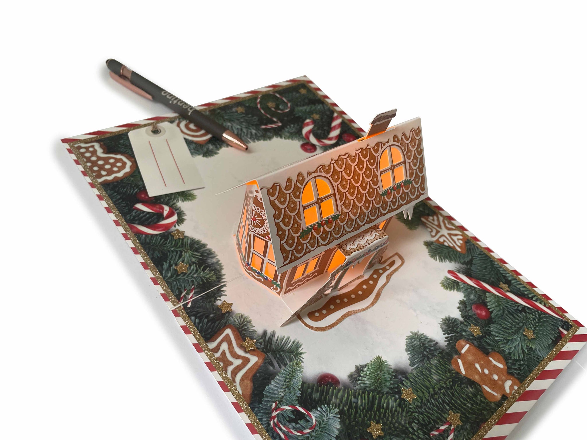 Es wird komplett mit einem Umschlag geliefert, was es zur idealen Wahl für diejenigen, die Geschenkkarten zu Weihnachten oder eine besondere Nachricht an Ihre Lieben senden möchten. Das Element der Unterdrückung - Diese 34,5 x 15,7 cm große Pop-Up-Weihnachtskarte liegt flach auf, wenn sie gefaltet ist, was sie zu einer perfekten Überraschung für Familie, Freunde oder geliebte Menschen macht. 【Personalisierungsraum】Unsere Weihnachtskarten sind mit einer beschreibbaren Oberfläche gestaltet, die reichlich Platz für herzliche Nachrichten bietet. Feiern Sie die Weihnachtszeit stilvoll mit unserer entzückenden Lebkuchenmann-Pop-Up-Karte. Diese Karten sind perfekt, um Urlaubsfreude unter Familie und Freunden zu verbreiten. Jede Karte ist ein wahres Kunstwerk, sorgfältig handgefertigt aus hochwertigem Karton, um sicherzustellen, dass jedes Detail perfekt ist. Lebkuchenmann mit 3D Effekt auf Graspapier und ‚Kann Spuren von Süßem 3d Weihnachtskarten Elegante 3D Pop-Up Weihnachtskarten: 6er-Pack, Weihnachtsmann Christmas Card Doppelkarte, Klappkarte LEBKUCHENMANN Frohe Weihnachten Diese aufwendig gestaltete 3D-Weihnachtskarte verfügt über ein skurriles Lebkuchenhaus, den Weihnachtsmann und einen wunderschön gearbeiteten Papier-Weihnachtsbaum, der für jeden Anlass eine festliche Atmosphäre schafft. Festliches Design von Lebkuchenmann-Pop-Up-Karten: Diese Paper Love 3D-Lebkuchenstadt-Popup-Karte verfügt über ein Lebkuchenhaus mit Weihnachtsmann, Weihnachtsbaum, Merry Christmas, Weihnachtsglocken, Weihnachtskranz und mehr, um die süße Magie der Weihnachtszeit einzufangen., Aufwendig handgefertigte Weihnachtskarte. Der feine Honiglebkuchen ist bei Klein und Groß einfach unglaublich beliebt. Wir zeigen dir das einfache Grundrezept, das garantiert gelingt Diese Pop-Up-Weihnachtskarte wurde zur Personalisierung entworfen und verfügt über einen geräumigen beschreibbaren Bereich, in dem Sie Ihre herzlichen Gefühle ausdrücken können. Ideal für: Weihnachtsgrüße Adventskalender-Füllungen Beilagen zu Geschenken Tischdekoration.