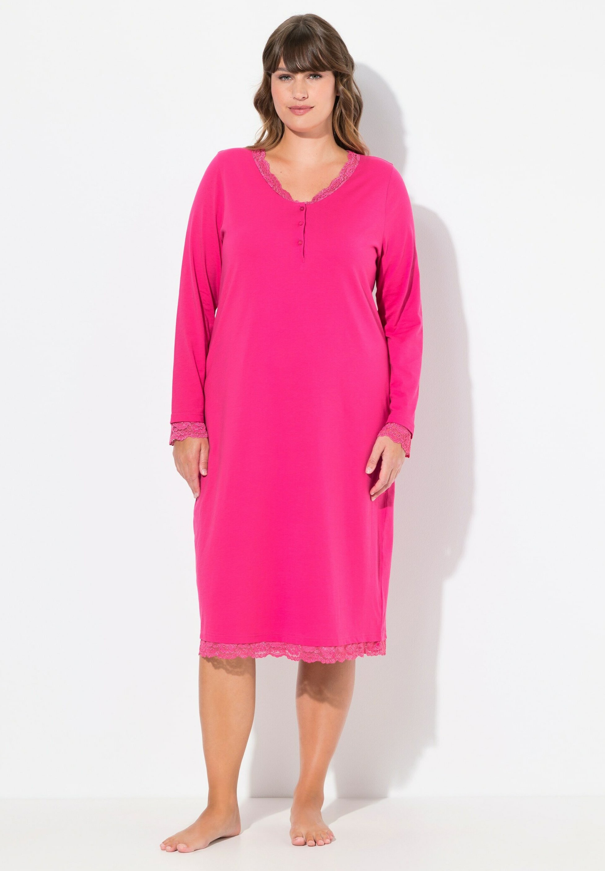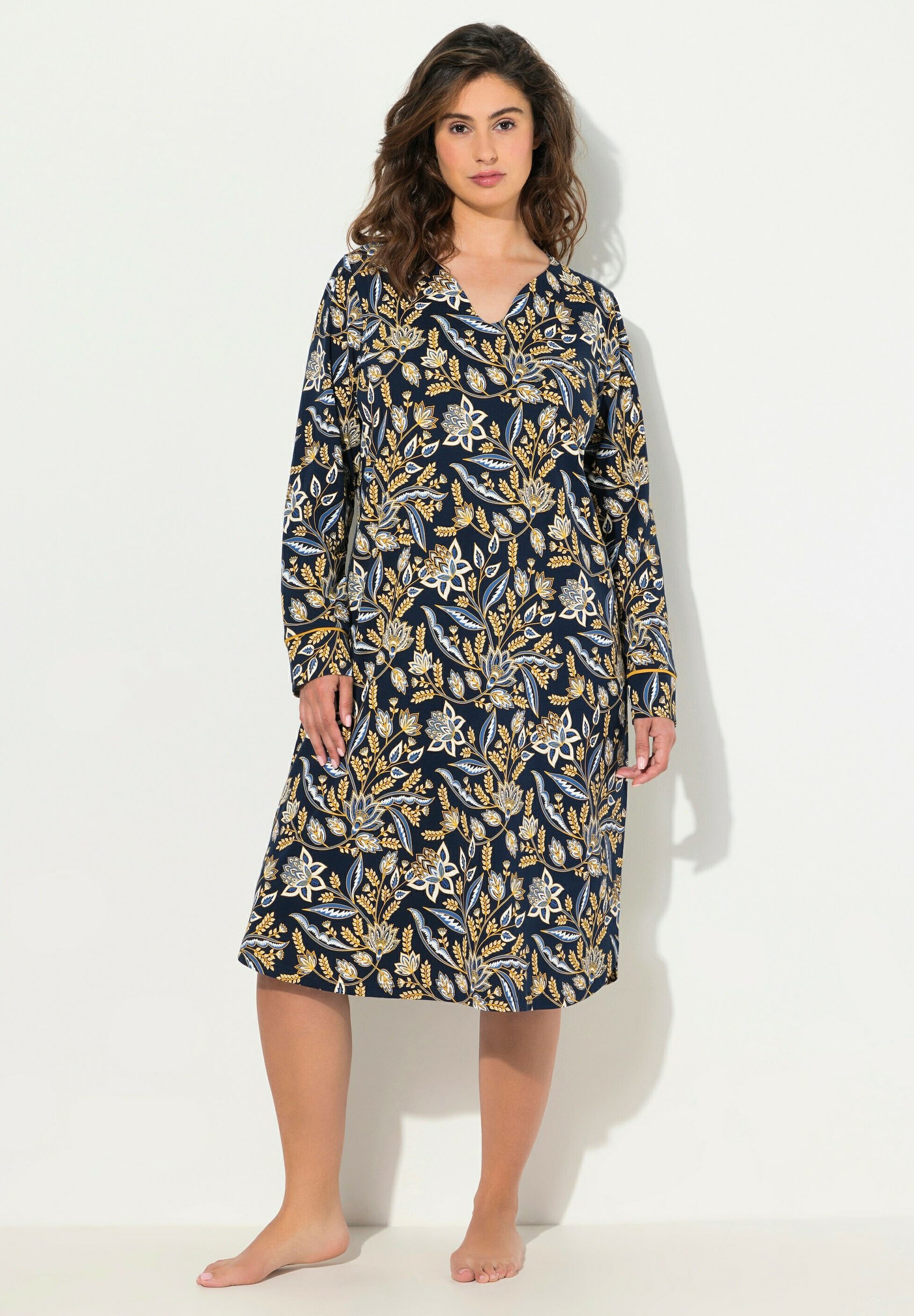 Ulla Popken Nachthemd Nachthemd Sptze V-Ausschntt Langarm