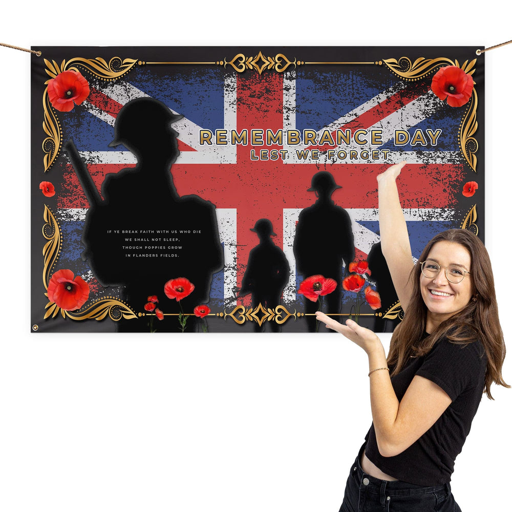 Mit der kraftvollen Botschaft Lest We Forget dient diese Flagge als feierliche Erinnerung, nie die Opfer zu vergessen, die von denjenigen gebracht wurden, die für unsere Freiheit gekämpft haben. Remembrance Day Poppy Banner, Card. we Will Remember Quote. 11th... Ehren Sie die tapferen Soldaten, die ihr Leben für unsere Freiheit geopfert haben, mit dieser Gartendekoration mit rotem Mohnblumen-Gedenktag der Union Jack. eBoutik - Union Jack Velvet Top Hat - 30CM Union Jack Velvet Top Hat Hergestellt aus langlebigen Materialien, hält diese Gedenktag-Wimpelkette den Elementen im Freien stand, sodass Sie sie stolz in Ihrem Garten oder Innenbereich präsentieren können. Gedenken: Ehren Sie die tapferen Soldaten, die ihr Leben für unsere Freiheit geopfert haben, mit diesem Union Jack Army Soldat Red Poppy Remembrance Day Garden Decor. Military Boots Remembrance Day Teal Background Red Poppy Flower War Blue Army Life Dark Green Peace 381091233 Diese Bannerflagge für drinnen und draußen mit den Maßen 1,5 x 0,9 m verfügt über das ikonische rote Mohnblumensymbol und das britische Flaggen-Design, was sie zu einer ergreifenden Hommage an die gefallenen Helden der britischen Armee macht. Union Jack Army Soldat Red Poppy Remembrance Day Garden Decor Outdoor Banner Flagge 1,5 x 0,9 m - Kostenloser Versand ab 29€. Jetzt bei bestellen